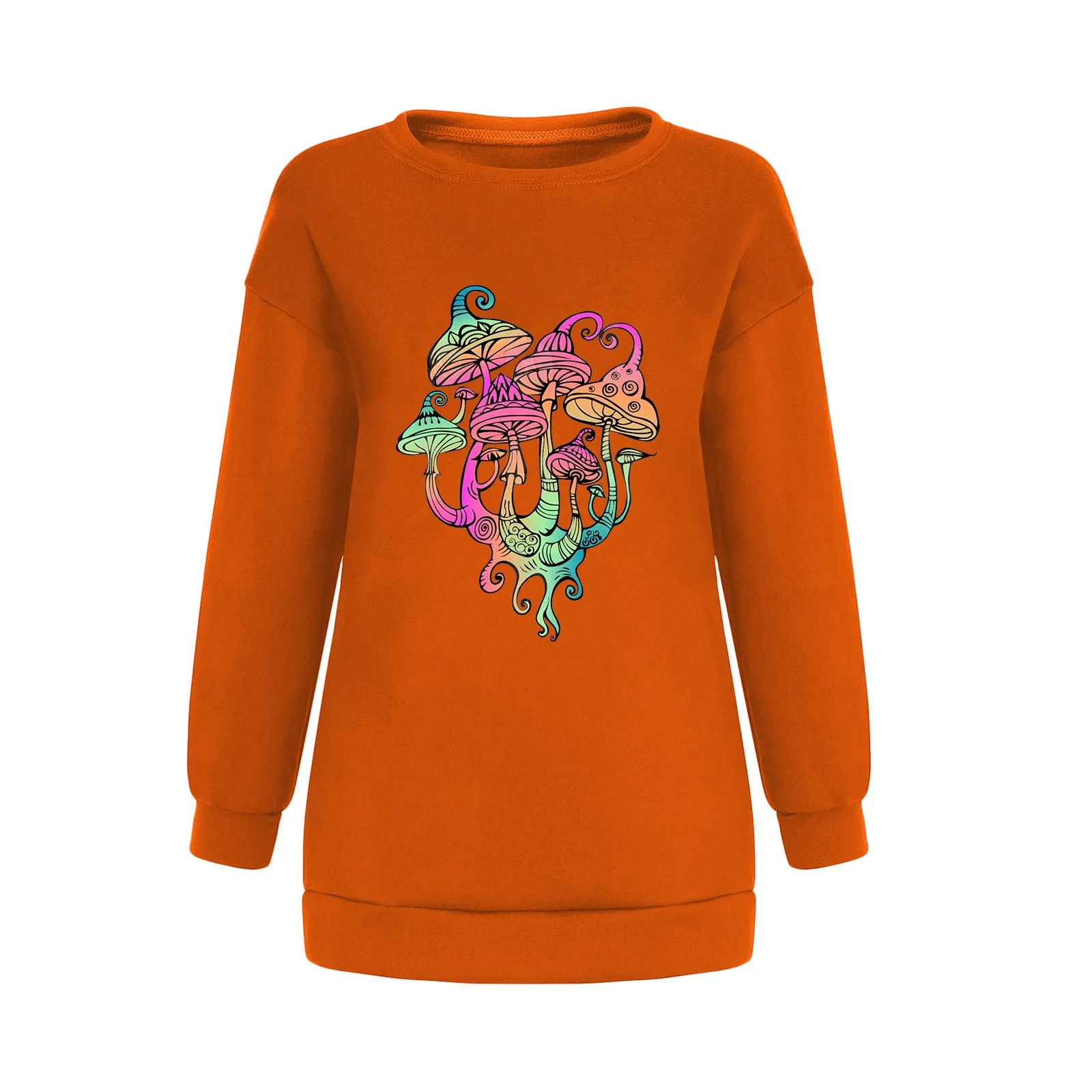 Женский свитшот с принтом в виде грибов, Осенний винтажный Свободны...