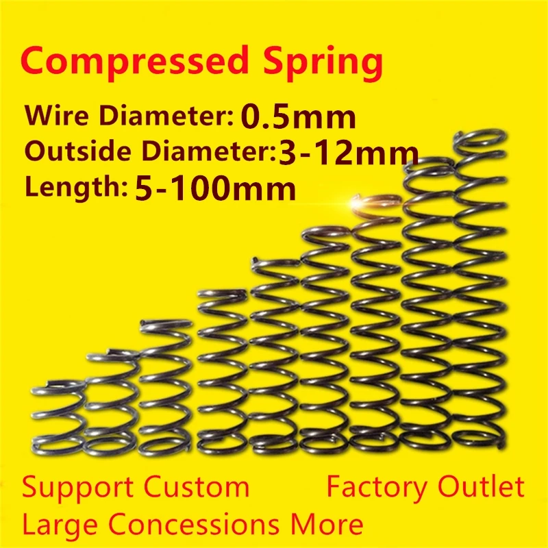 10 шт. провод Dia 0,5 мм 65Mn цилиндрической катушки компрессионная микро маленькая с пружинным возвратом Давление сжатого Рессорная сталь Длина 5-100 мм