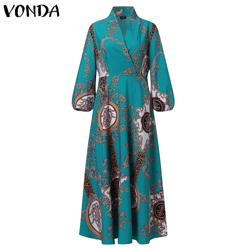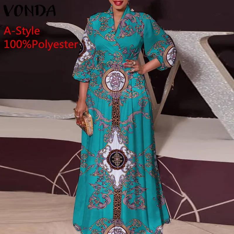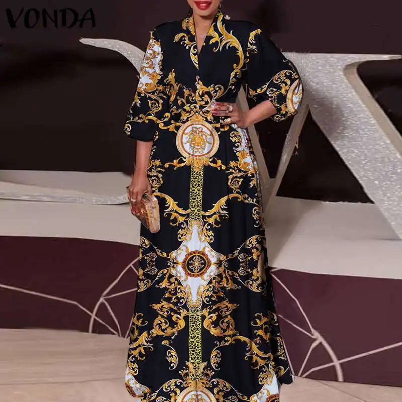 Весеннее вечернее платье 2022 VONDA, женское винтажное длинное платье с принтом, Повседневное платье, Женский праздничный сарафан большого размера