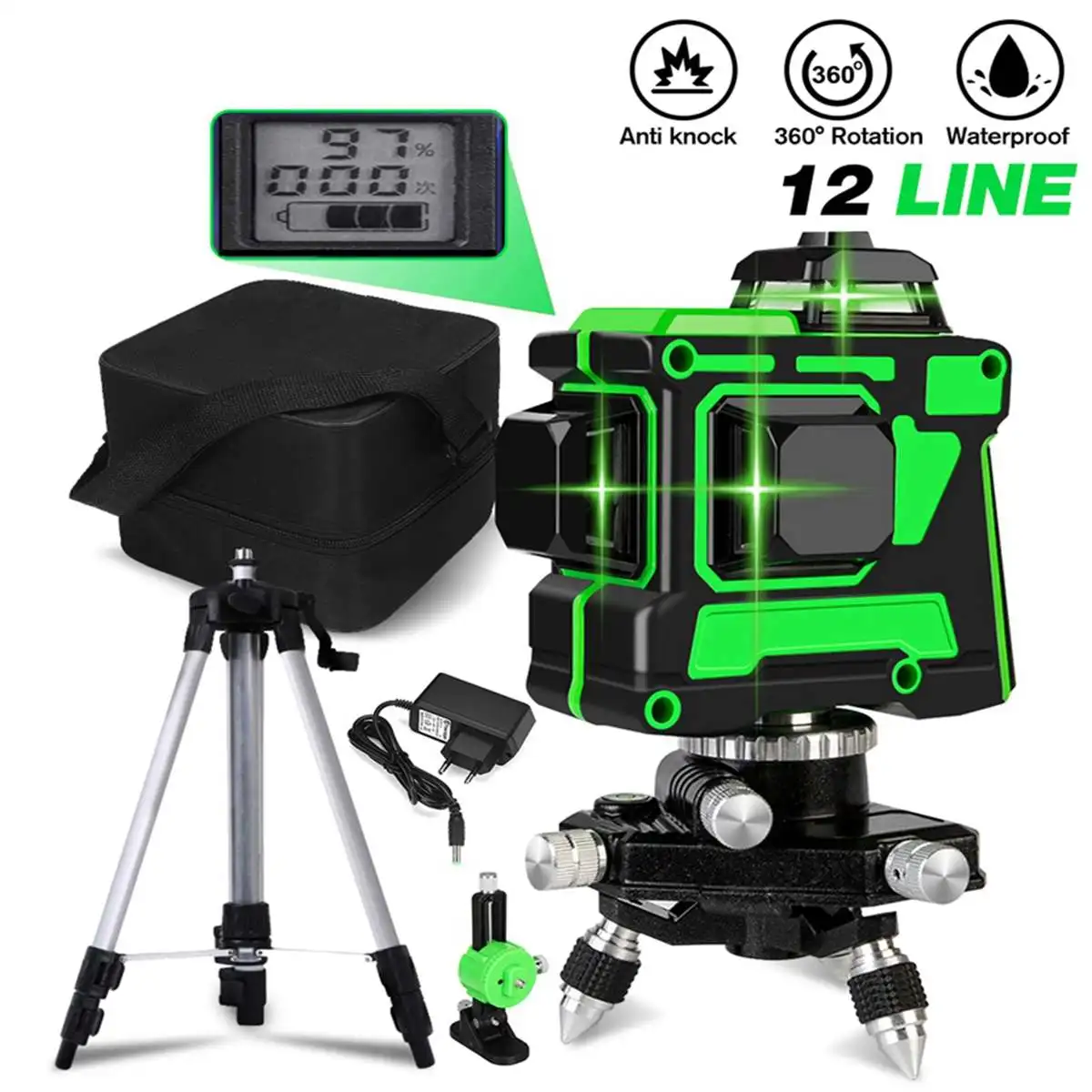 Лазерные уровни, 12 линий, 3D светильник, горизонтальный и вертикальный крест, автоматический самонивелирующийся лазерный уровень 360, Аккумулятор 6000 мАч, штатив и нм