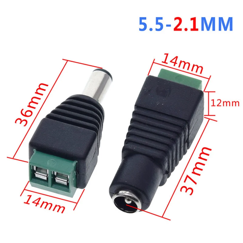 2,1x5,5 мм Разъем питания постоянного тока, Штекерный адаптер 12 В 5 А, штекер + гнездо питания для светодиодной ленты камеры видеонаблюдения