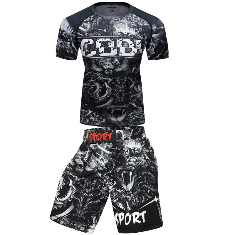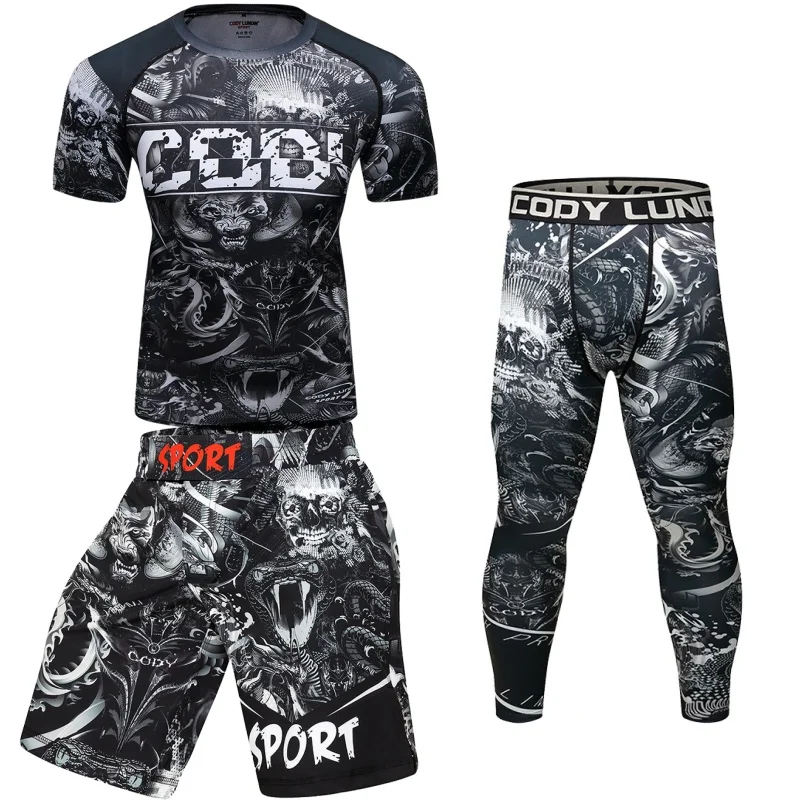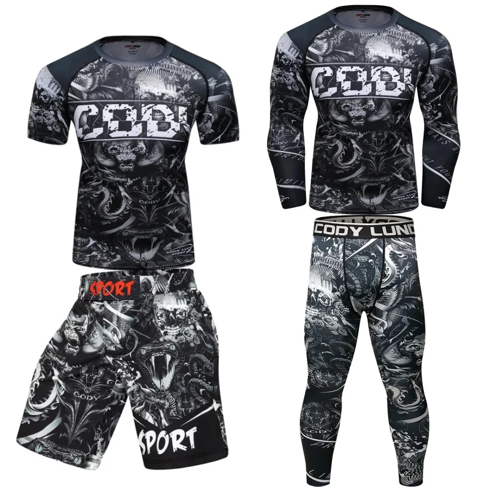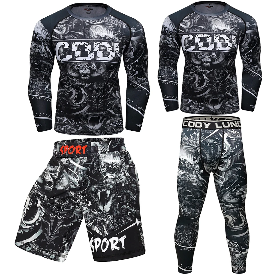 Мужская спортивная компрессионная рубашка и брюки, костюм для смешанных боевых искусств, шорты, тренировочный комплект одежды для фитнеса в тренажерном зале, спортивная одежда