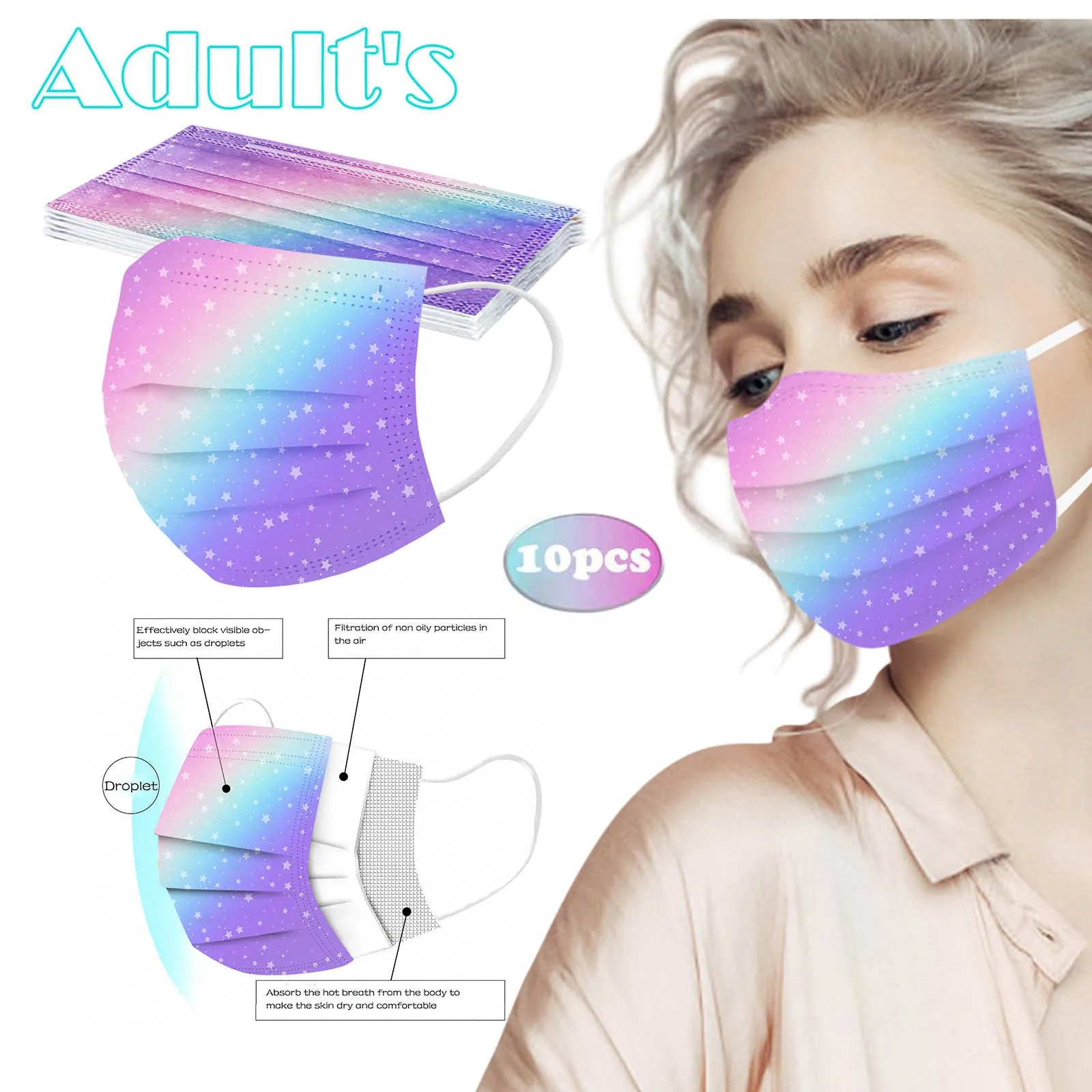В 3 слоя (спанлейс) одноразовая маска изготовлена из 3-х слойный материала спанлейс, который является безопасным и здоровым для использования. Дышащий материал и милые узоры делают его практичным и стильным. Специальный трехслойный дизайн spunlace обеспечивает защиту от пыли, выхлопных газов автомобиля, пыльцы и т. д. эластичный ушной крючок легко носить и не оказывает давления на уши. Маникюрный салон или любые другие области, которые могут нуждаться в защите