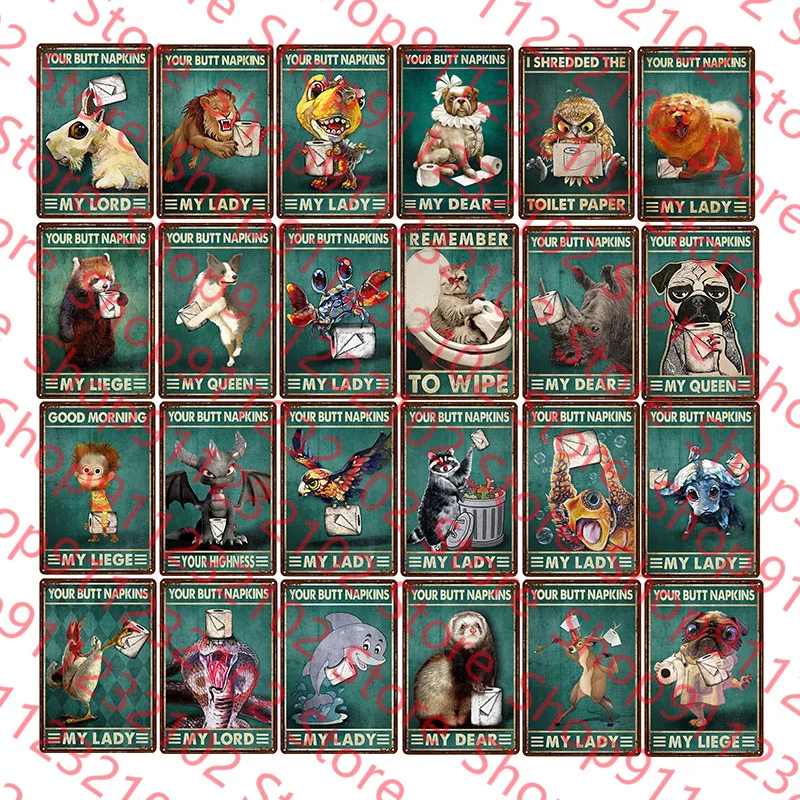 Металлический знак с животными, салфетки, мой Лорд, винтажные жестяные знаки для ванной, мой Лорд, Настенный декор, искусство, настенная тарелка, плакат, настенная доска
