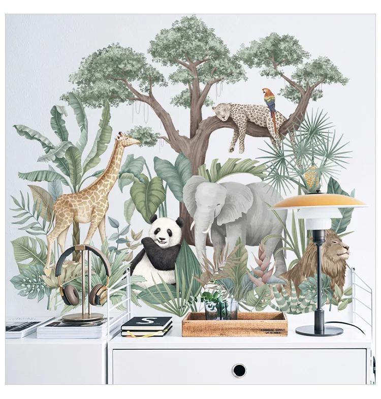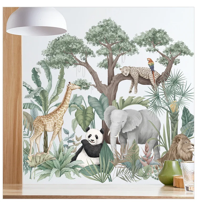 Съемные настенные стикеры в скандинавском стиле с растениями, фоновые обои для спальни, декор для детской комнаты, коридор, Тропический дождевой лес, животные