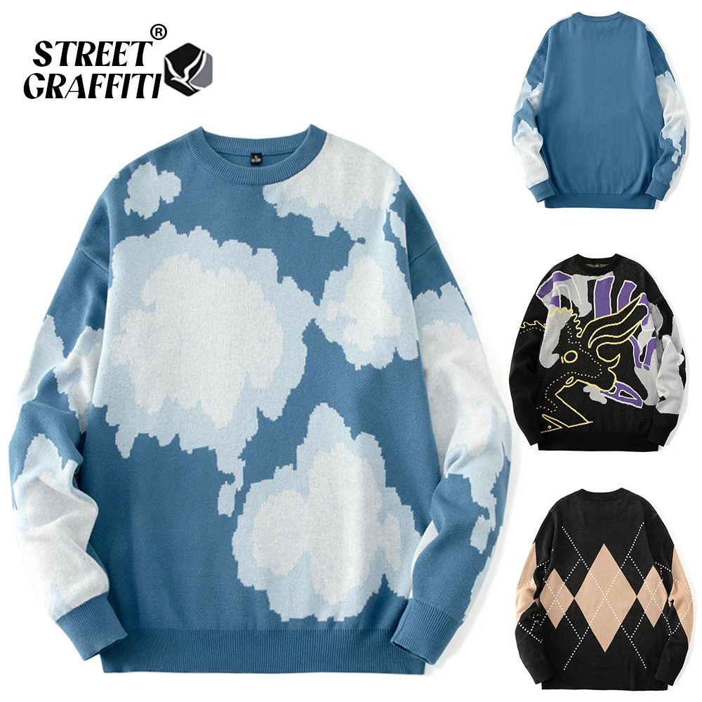Фирменный мужской хлопковый свитер в стиле Харадзюку S.T.G, зимняя одежда, модный вязаный женский пуловер, свитер 2021, мужские джемперы