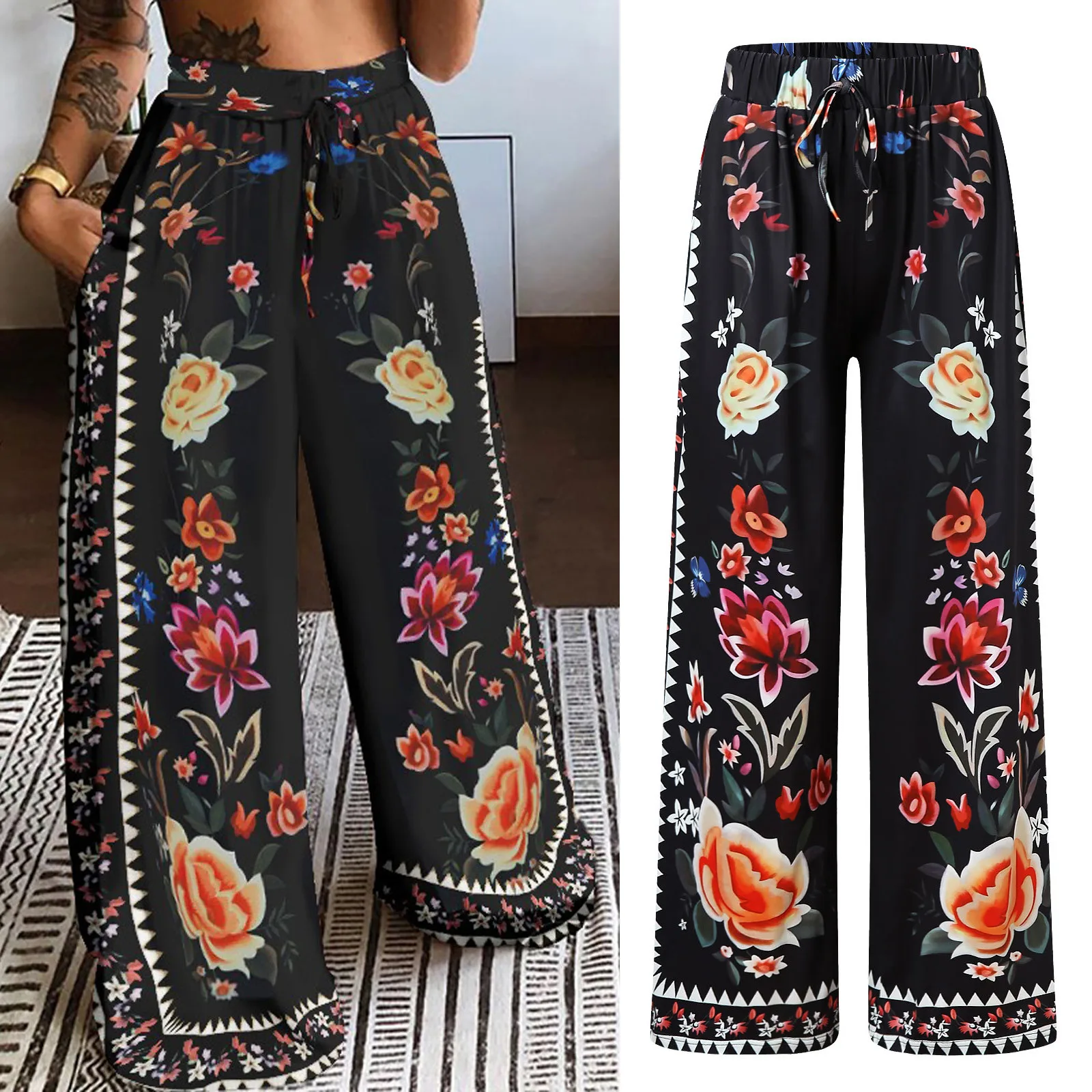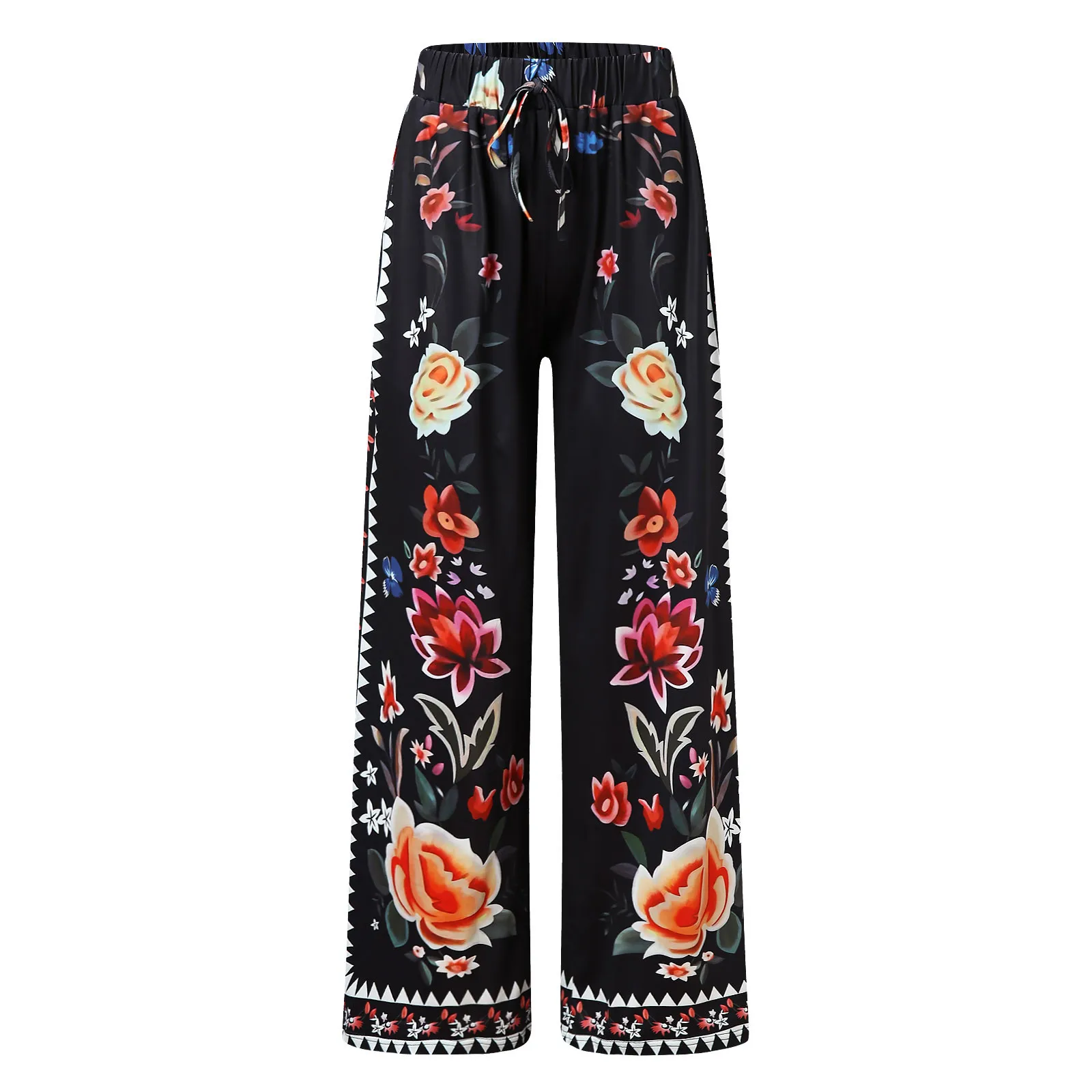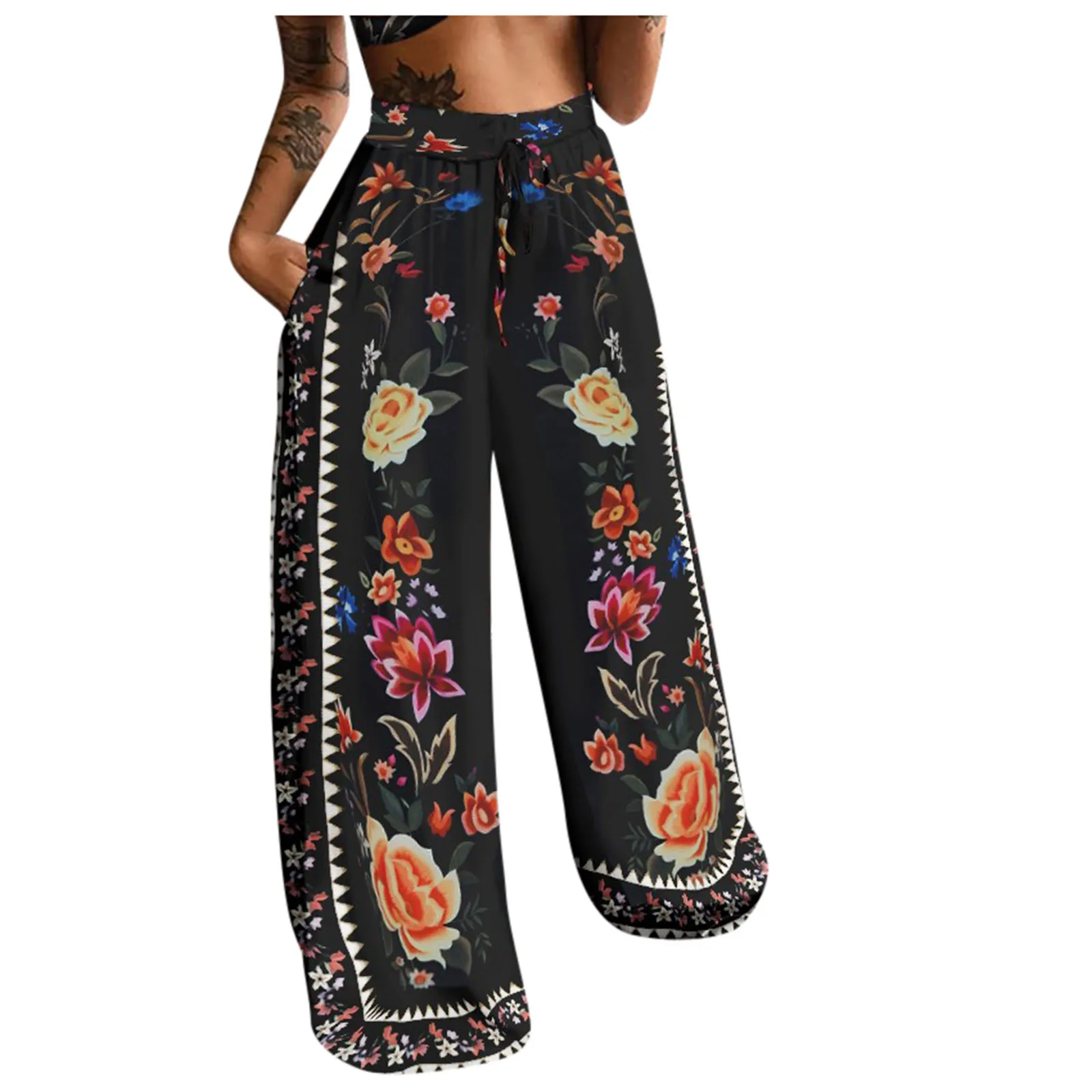 Женские брюки с высокой талией, Модные Повседневные Легкие Брюки с принтом, длинные брюки в стиле бохо, пляжные брюки с карманами, женские брюки
