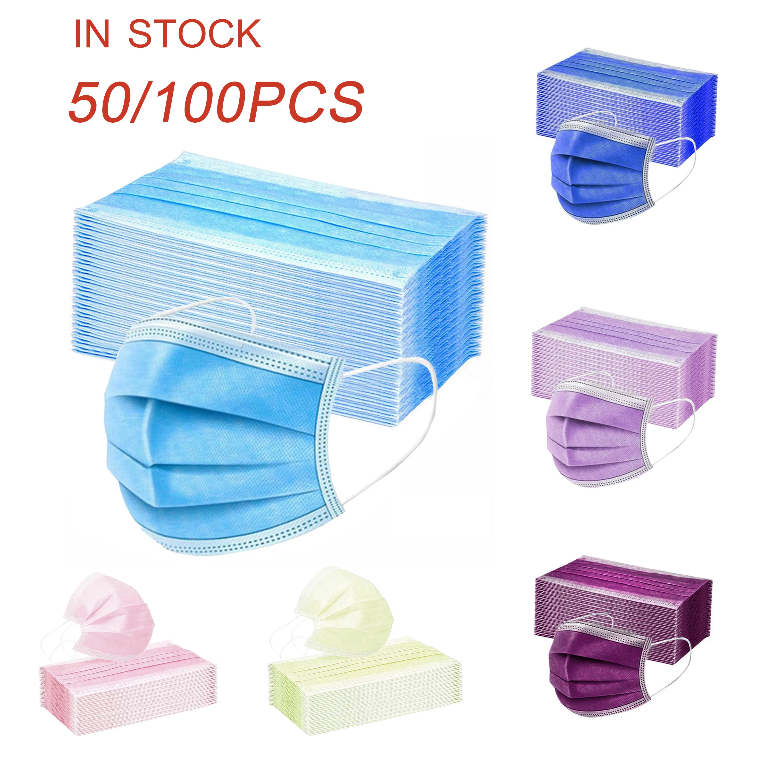50 шт одноразовые маски для лица промышленные 3 слойные петли для ушей
