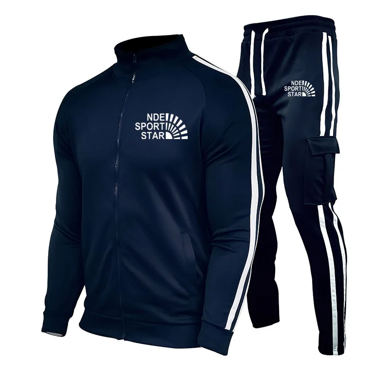 Новый мужской весенне-осенний Повседневный Спортивный костюм свитшот на молнии куртка + брюки Высококачественная хлопковая брендовая спортивная одежда с логотипом на заказ