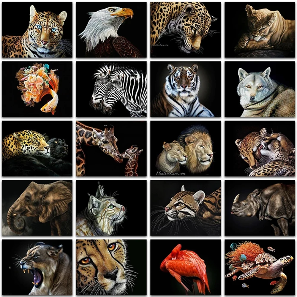 Алмазная картина 5D "сделай сам", набор для рисования, темные животные, лошадь, кошка, Лев, тигр, волк, жираф, квадратная и круглая вышивка, мозаика, вышивка крестиком