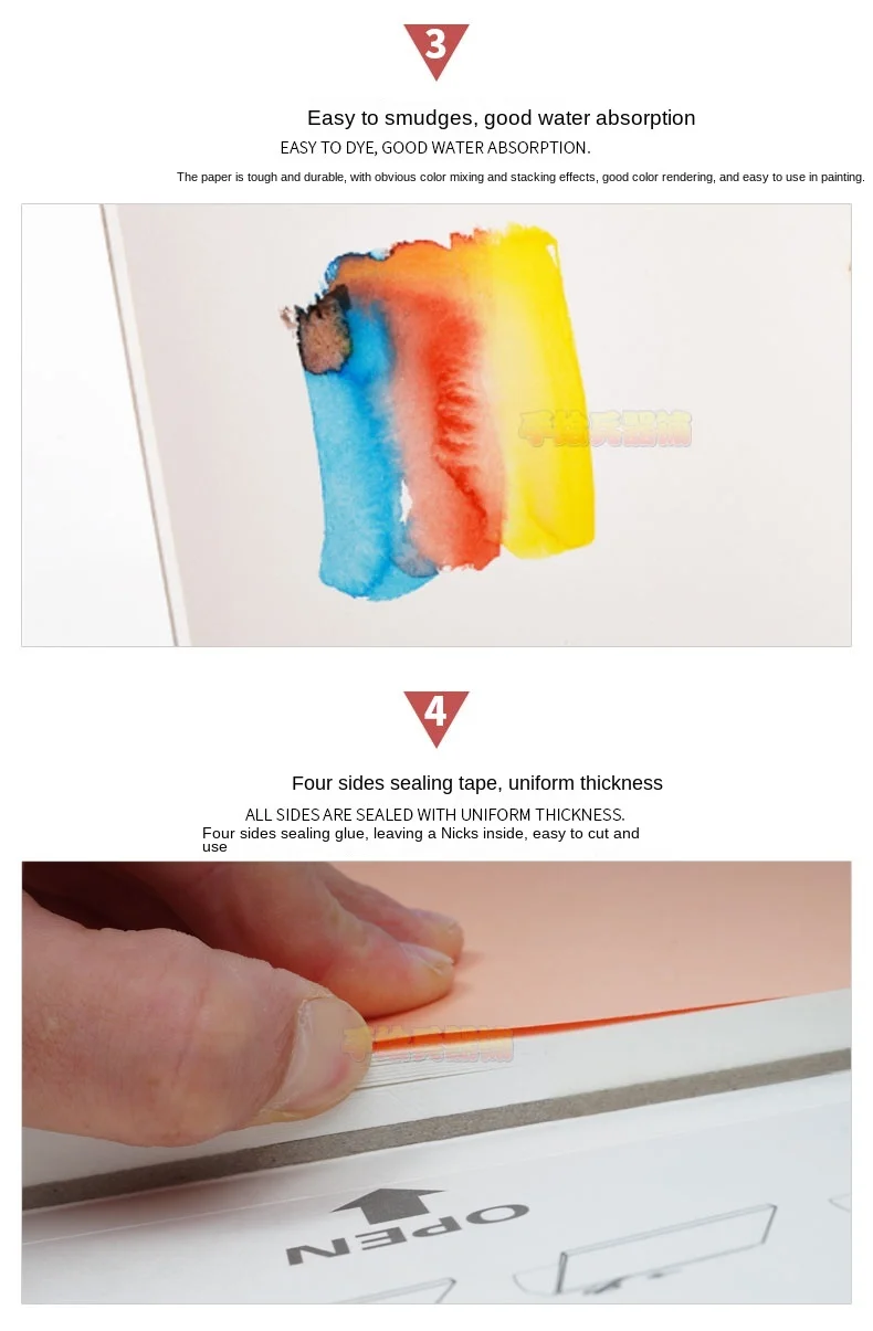 Акварельная книга Baohong artist, 100% хлопок, бумага для акварели, четырехсторонний герметик, 300 г, тонкиеСредниегрубые школьные принадлежности