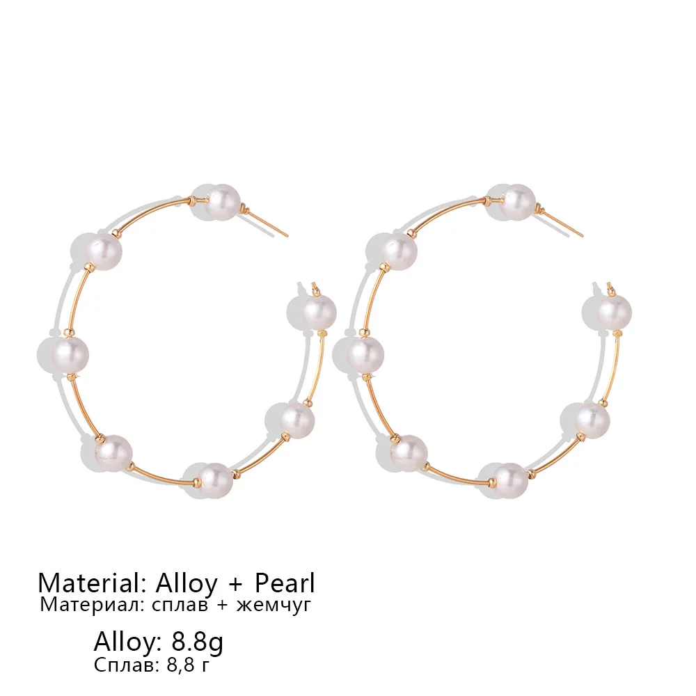 2021 Новые простые винтажные Золотые Большие круглые серьги, женские изысканные серьги-кольца с жемчугом и бусинами, крупные ювелирные изделия