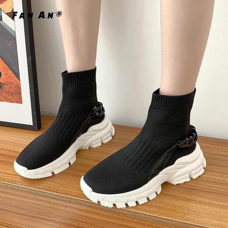 Высокие эластичные носки, женская обувь, Новинка осени 2021, вязаны...