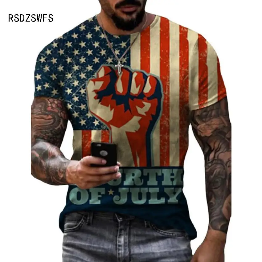 Летняя мужская футболка с американским флагом, Классический 3D прин...