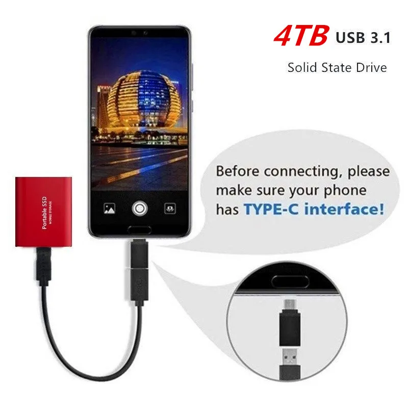 Внешний жесткий диск SSD 2 ТБ, 8 ТБ, 4 ТБ, TYPE-C, 1 ТБ, для ноутбуков и настольных ПК