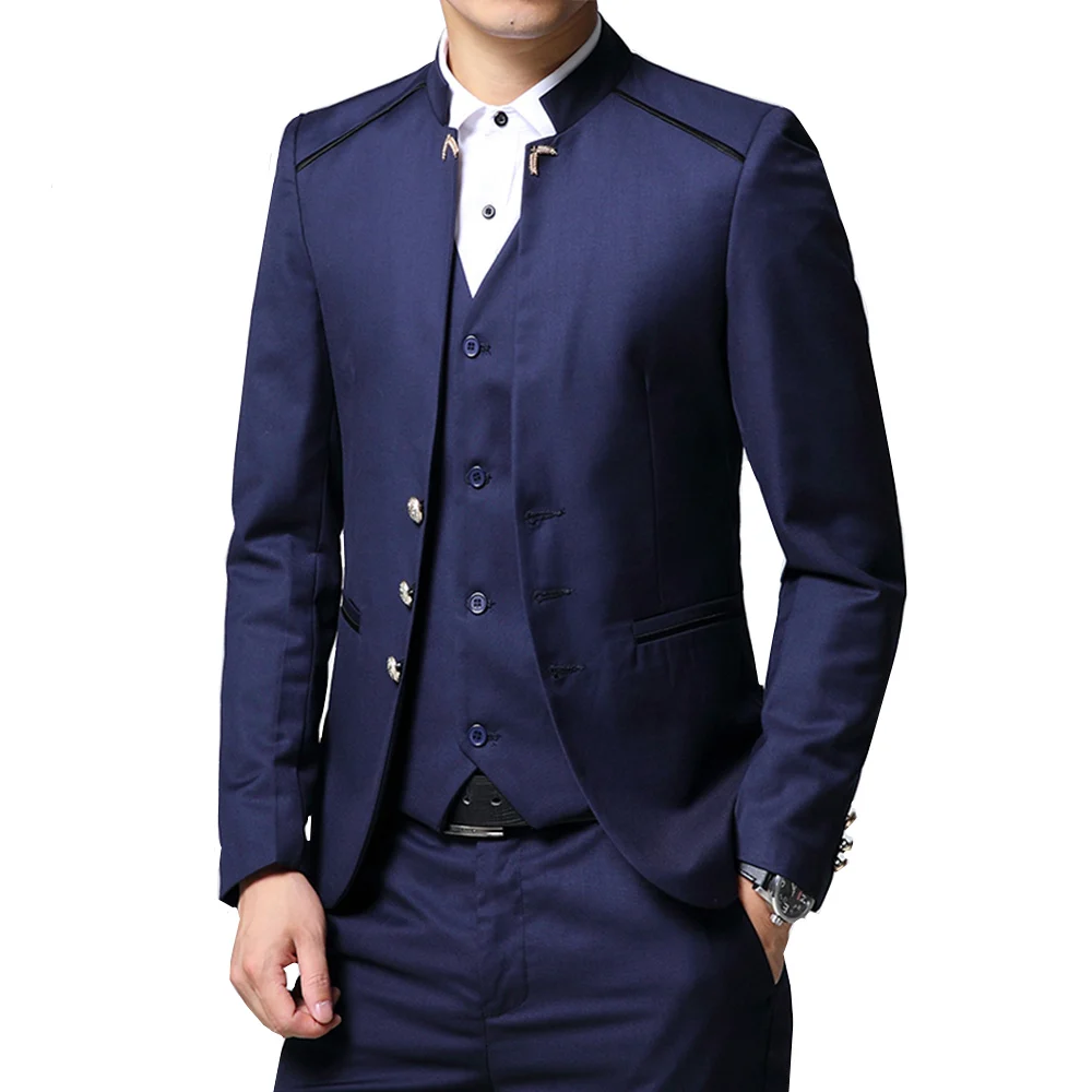 Мужской костюм-тройка с воротником-стойкой в китайском стиле