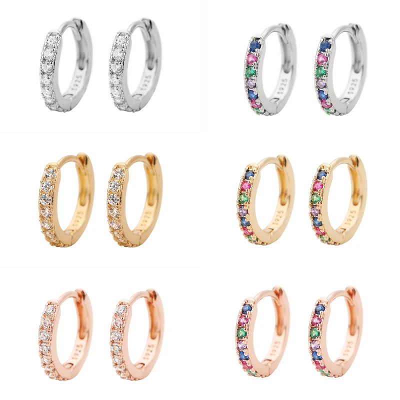 Очаровательные маленькие серьги-обручи для женщин, Хрящевые, изящные, радужные, с кубическим цирконием, серебряного цвета, модные украшения для вечерние
