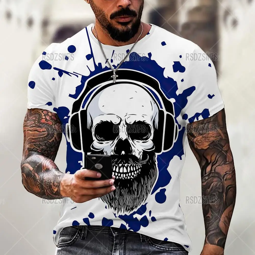 Футболка мужская с 3D-принтом черепа, модная дышащая спортивная рубашка с коротким рукавом, топ в стиле унисекс, уличная одежда, лето
