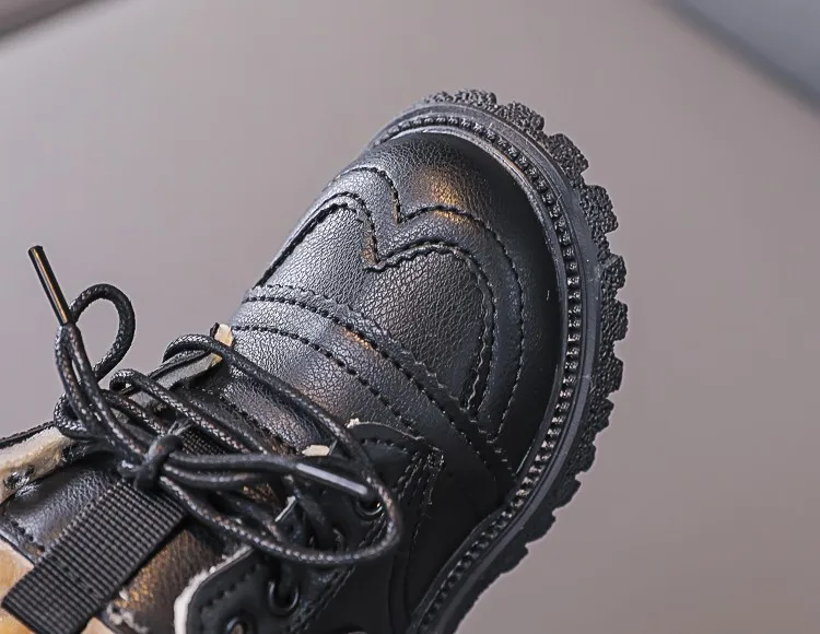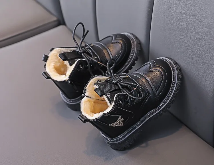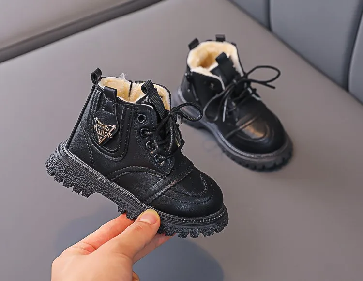 Детские зимние плюшевые ботинки из искусственной кожи, однотонные Теплые Модные осенние ботильоны для мальчиков и девочек, ботинки для малышей, размеры 21-30, детская обувь
