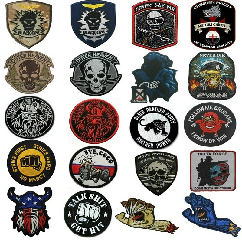 Нашивки с вышивкой в виде крючка с изображением черепа, военные так...