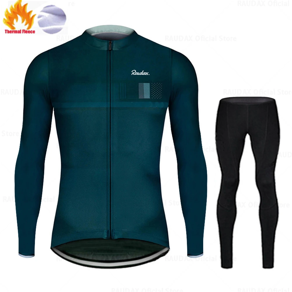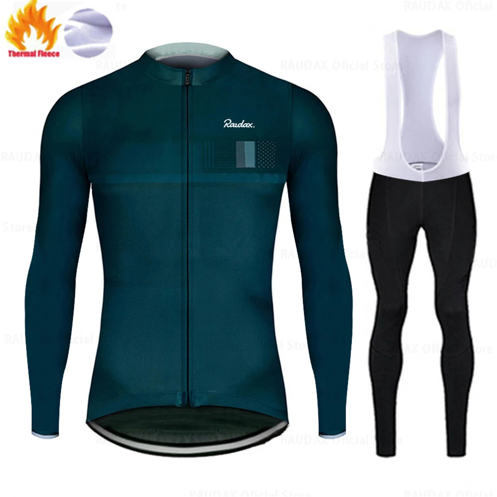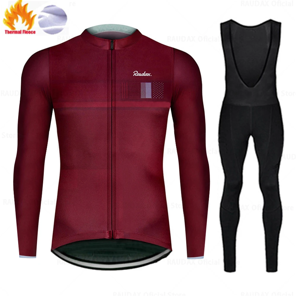 Комплект зимней велосипедной одежды Raudax, Мужская Уличная термальная одежда для езды на велосипеде и горном велосипеде, флисовый комплект с нагрудником и штанами, комплект велосипедной одежды из Джерси
