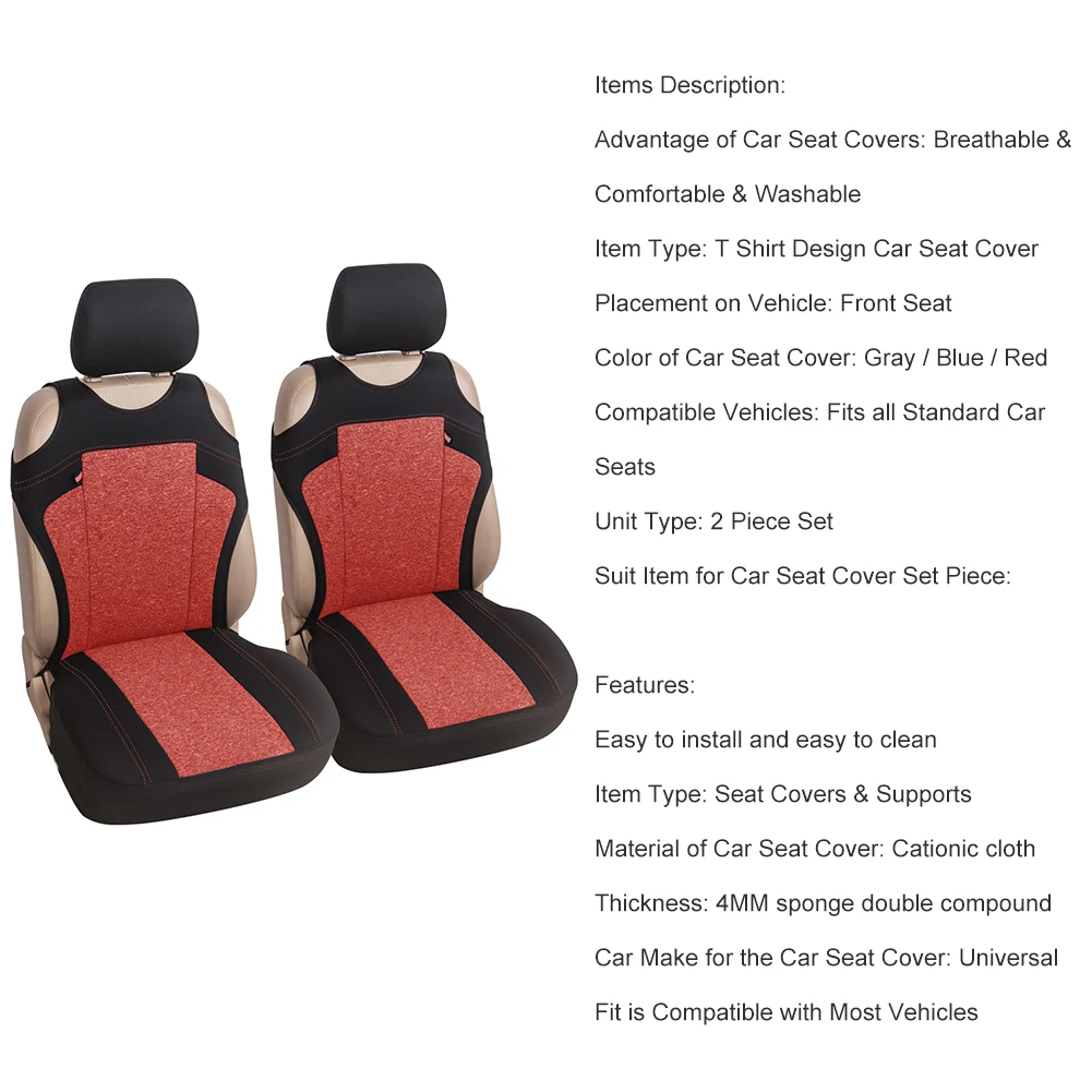Универсальные чехлы на сиденья автомобиля, 4 шт., чехлы на передние сиденья, катионная ткань, губка, аксессуары для интерьера, дизайн футболки для автомобиля, грузовика, фургона