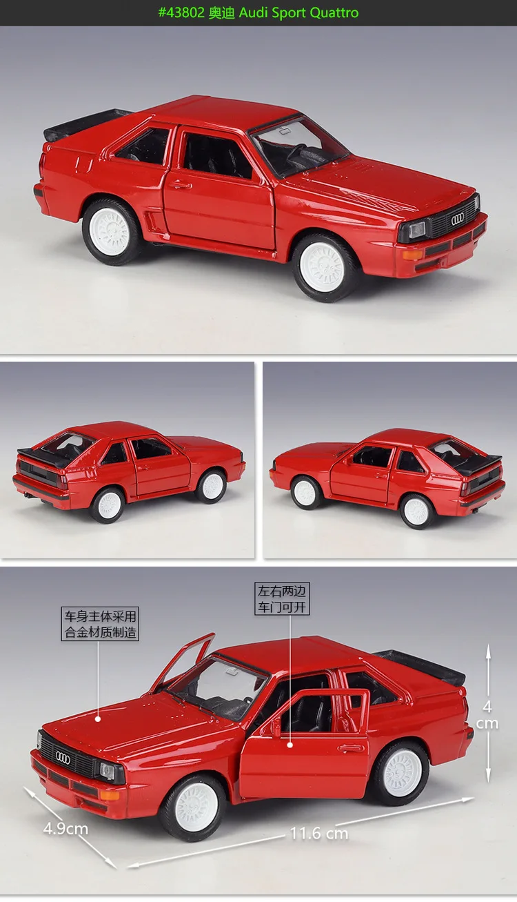 Модель автомобиля Welly Willie 1:36 Audi sport Quattro, из сплава, рождественские игрушки, игрушки для мальчиков