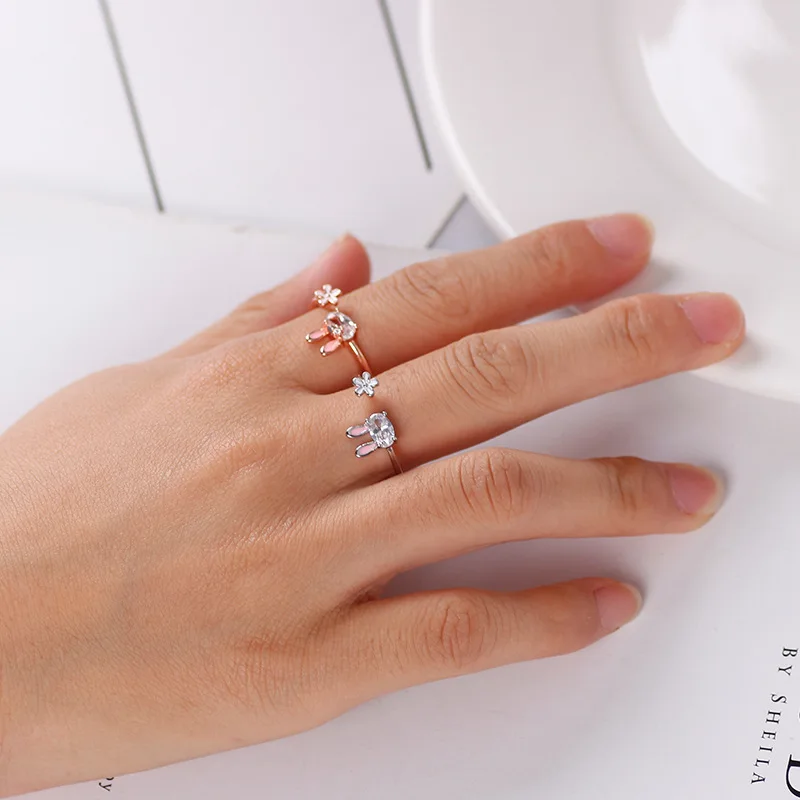 Женское Открытое кольцо в виде кролика, роскошное регулируемое коль...
