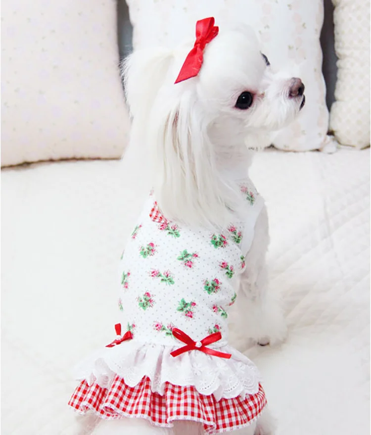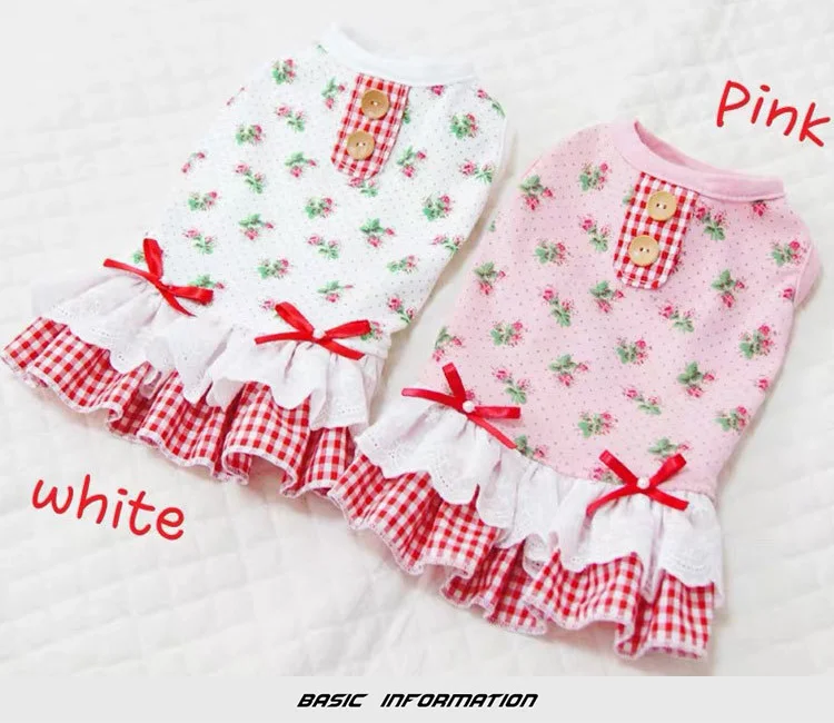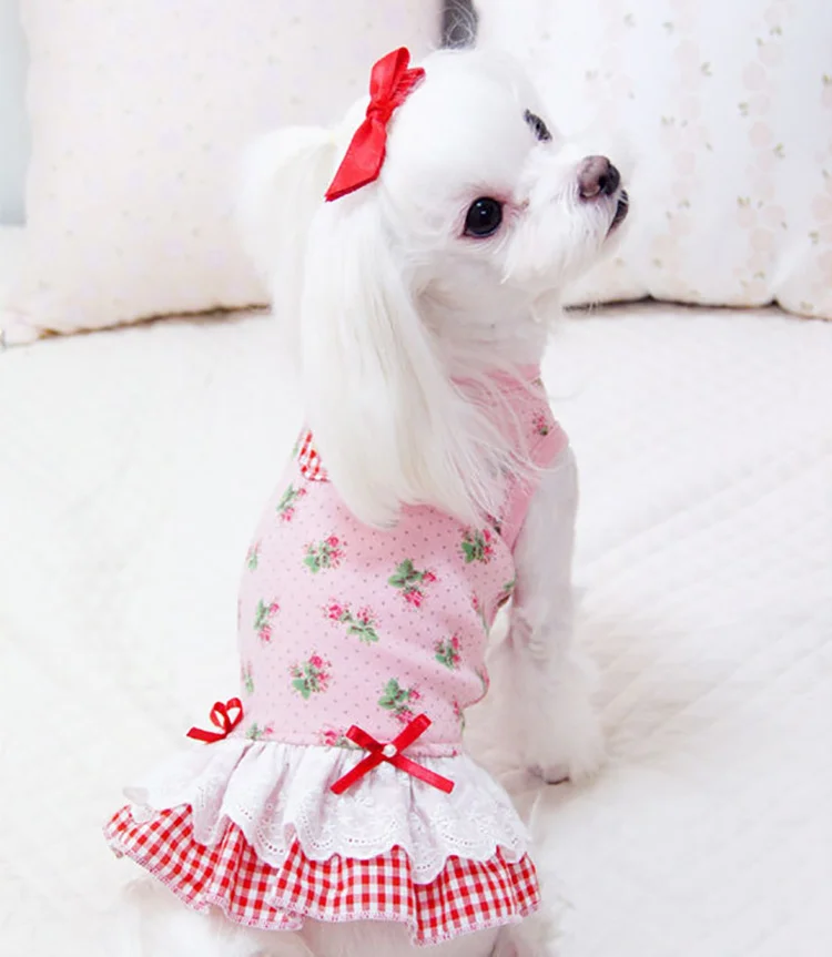 Розовое свадебное платье для собаки летняя одежда для маленьких домашних животных Одежда для собаки чихуахуа клетчатая Цветочная Юбка милая искусственная одежда для щенка