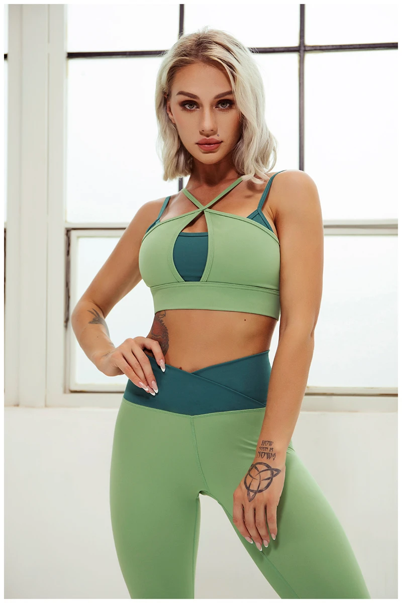 Женский комплект для йоги из 2 предметов, сексуальный бюстгальтер д...