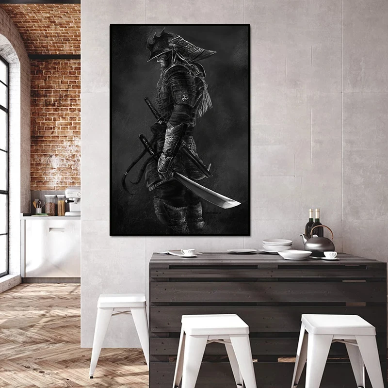 Черно-белая японская фигурка самурая, плакаты, HD принты на холсте, картина маслом, настенные картины для гостиной, украшение для дома