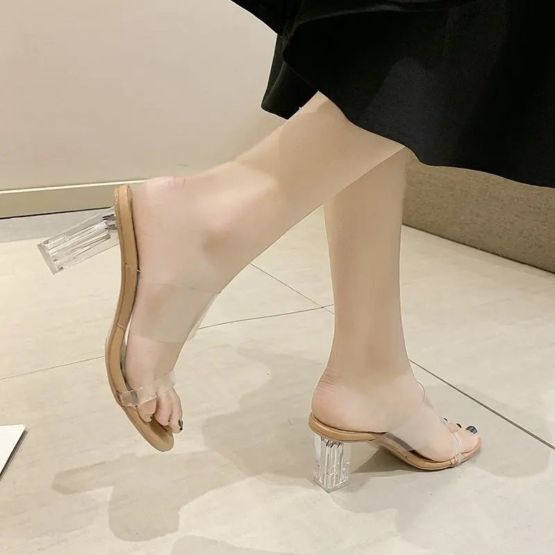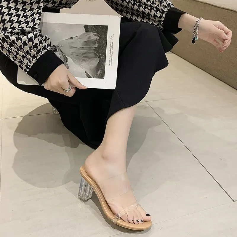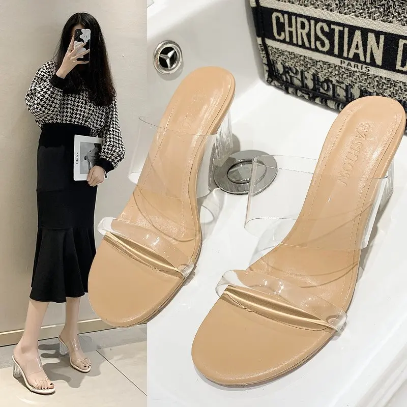 Женские шлепанцы на каблуке, женские сандалии, прозрачные шлепанцы,...