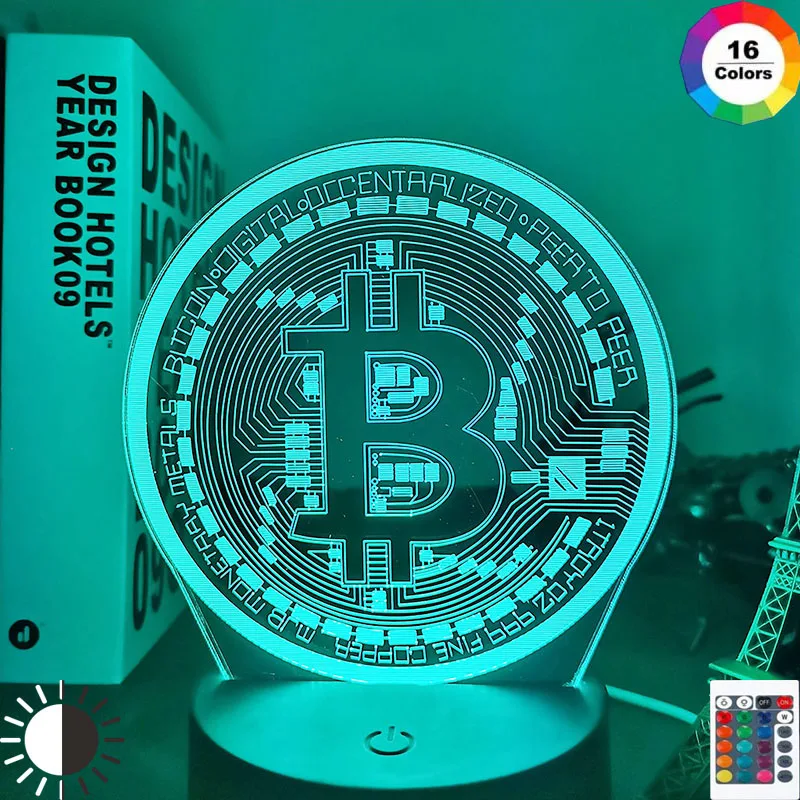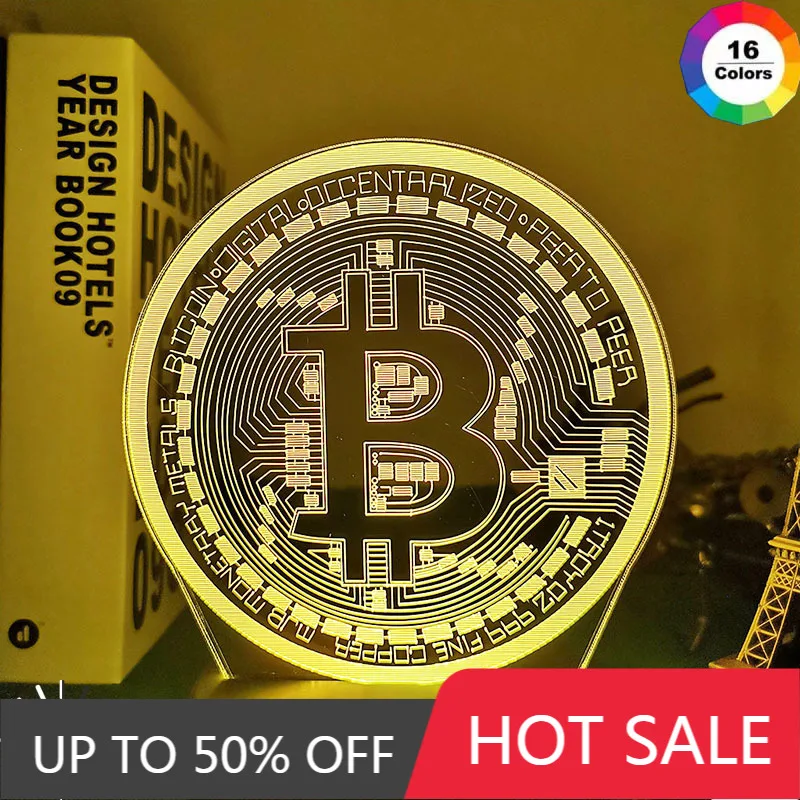 Акриловый светодиодный ночсветильник с биткоином для комнаты, декор...