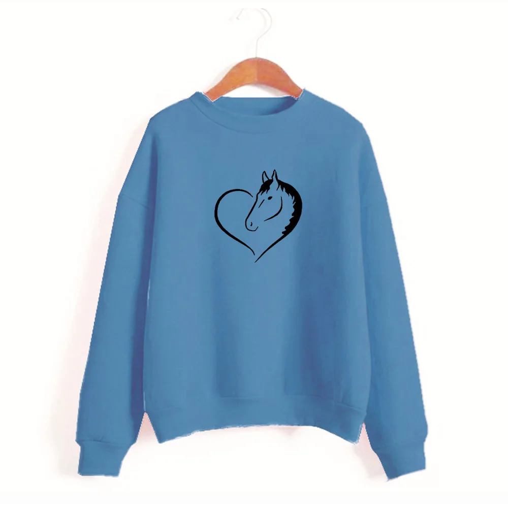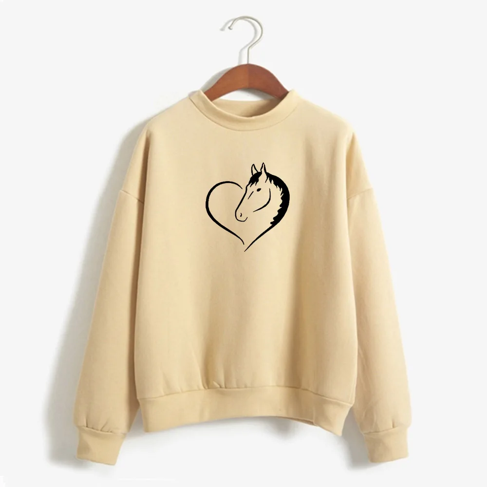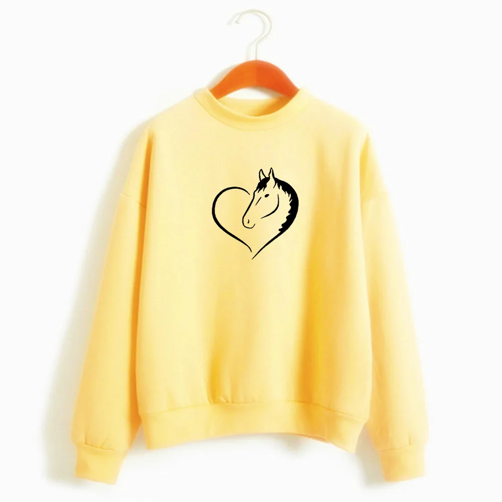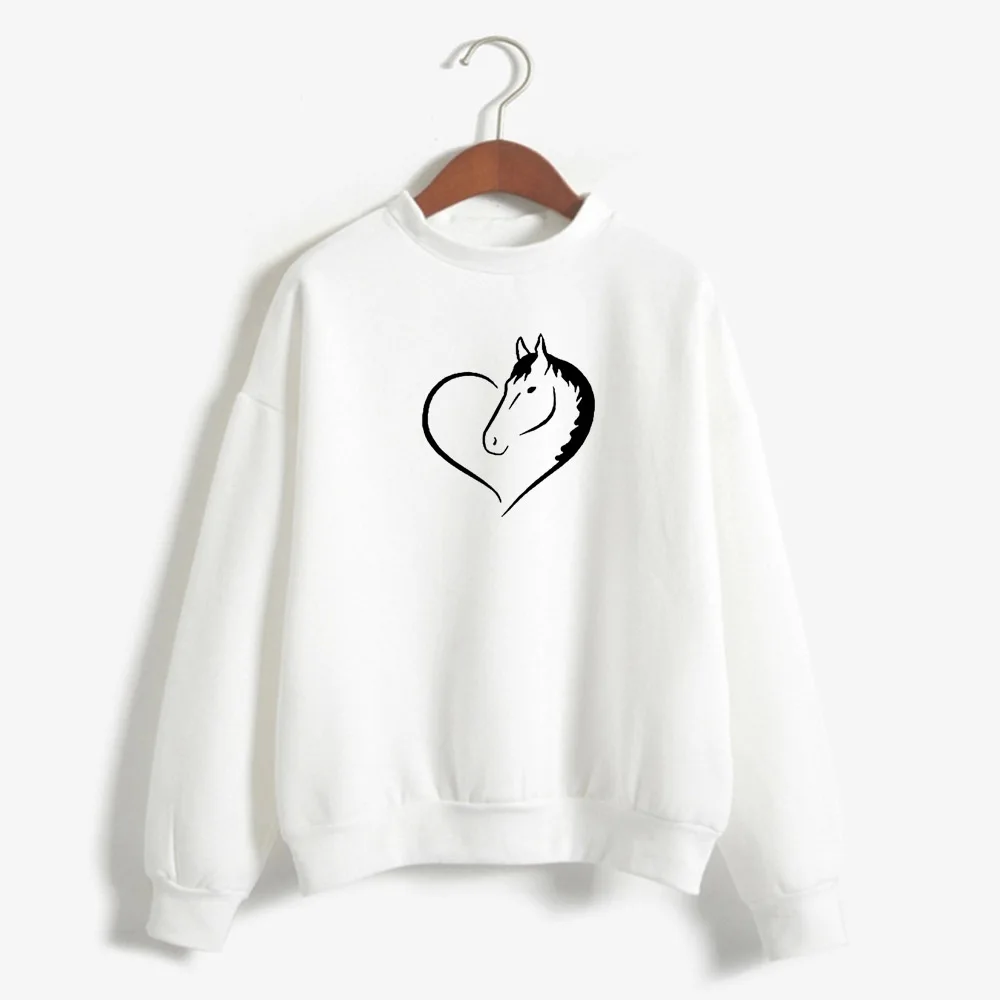 Кавайная Толстовка с принтом в виде сердца и лошади, женская модная уличная одежда с короткими рукавами, толстовки для девочек, одежда Harauku, Прямая поставка, 1 заказ