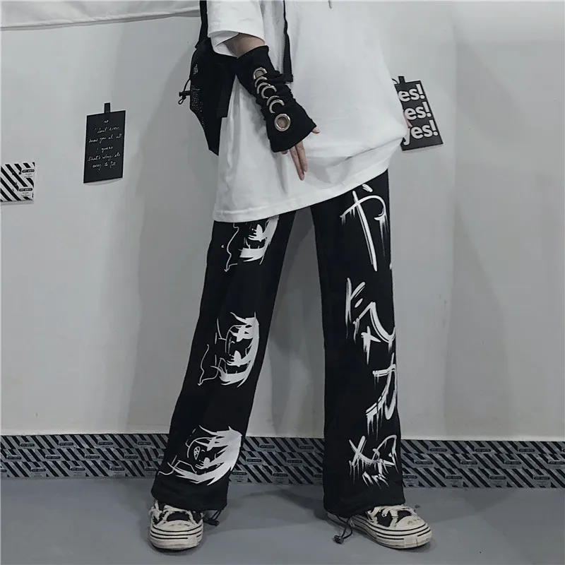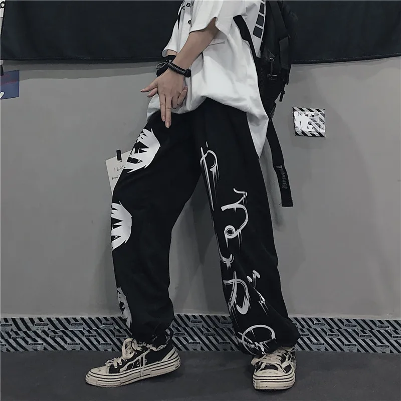 Брюки с широкими штанинами в стиле хип-хоп, с принтом аниме