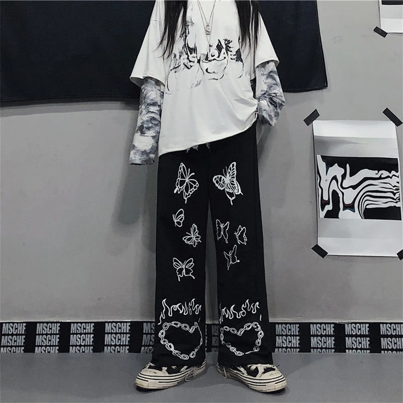 Брюки женские Harajuku с японским рисунком в стиле хип-хоп, широкие...