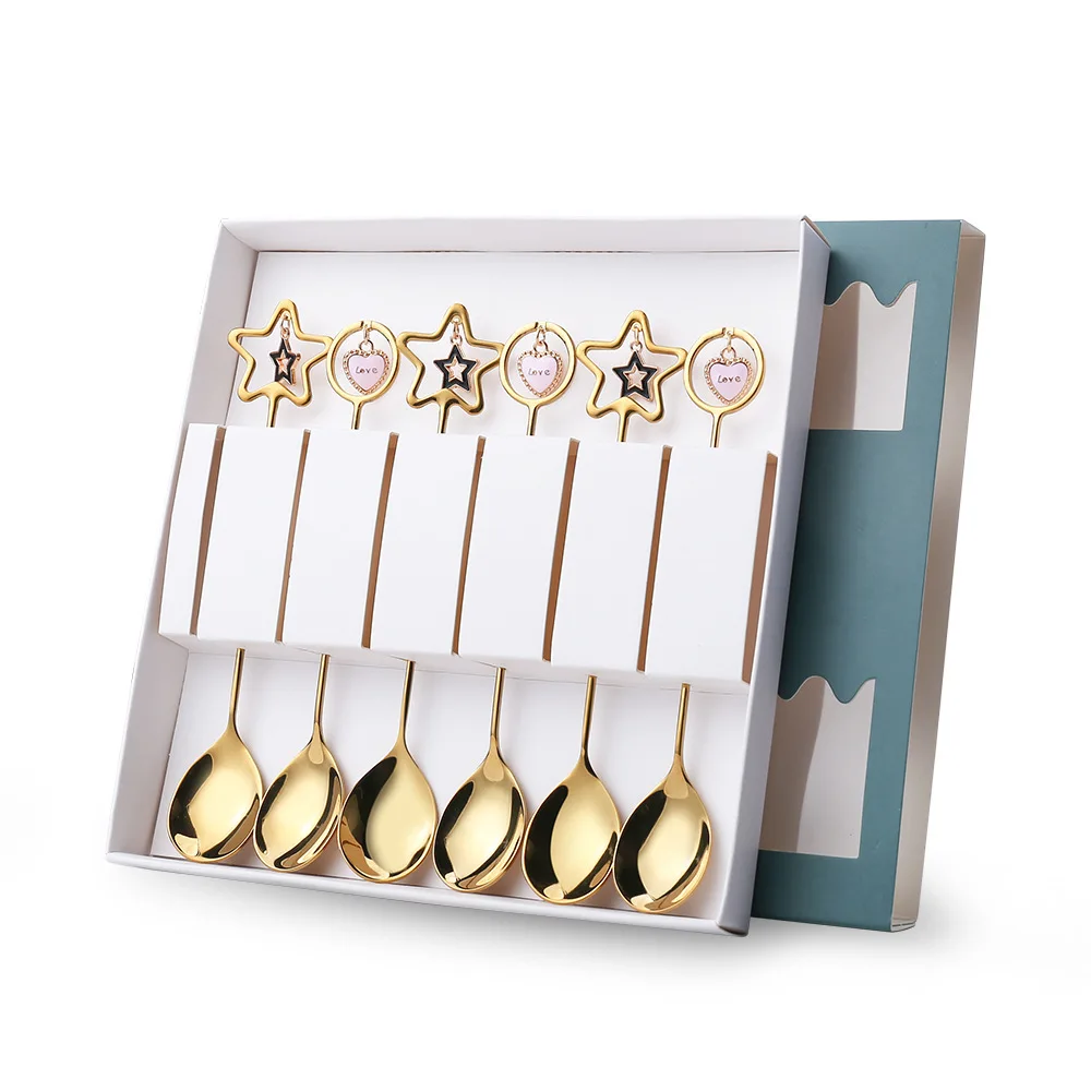 6 шт., новогодние чайные ложки из нержавеющей стали