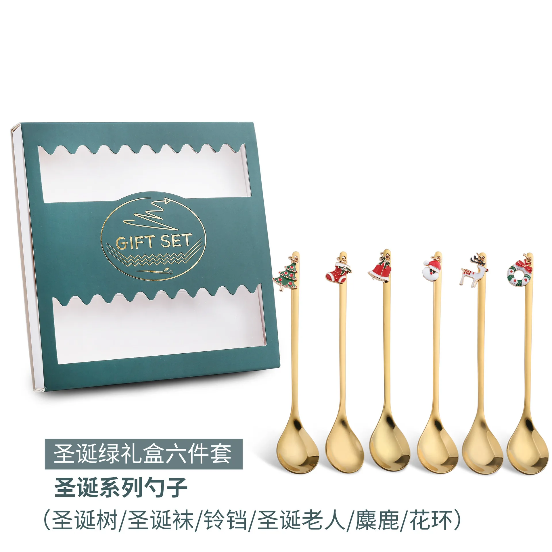Ложка из нержавеющей стали, Рождественская искусственная ложка, кофейная десертная ложка, креативная вилка для фруктов, подарочный набор, ручной подарок