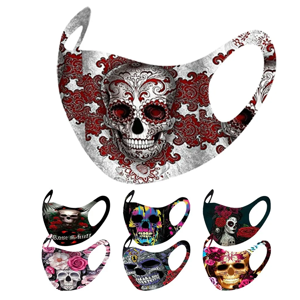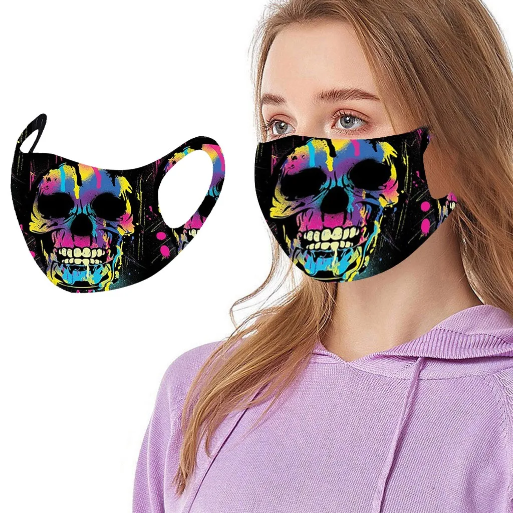 Моющаяся многоразовая маска для лица с принтом черепа, Пылезащитная...