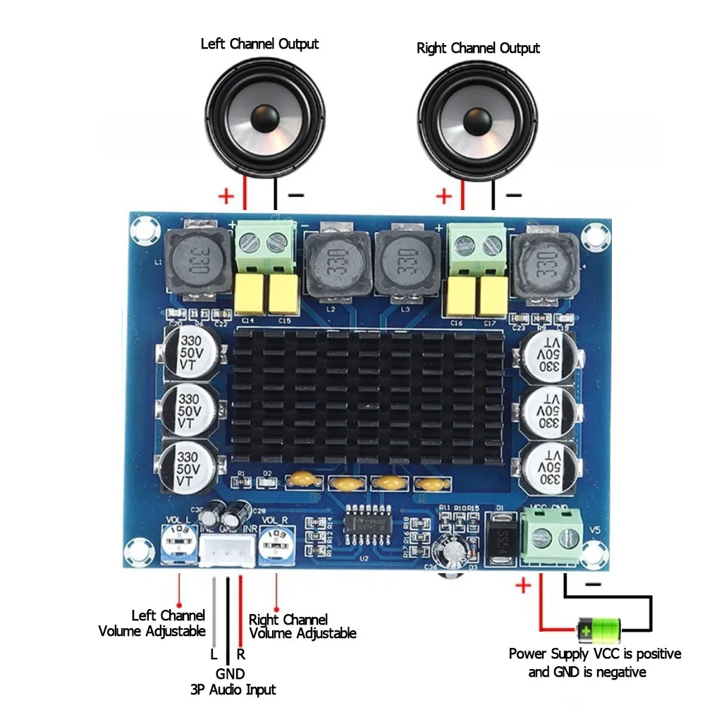 Двухканальная плата цифрового усилителя 2*120 Вт, высокомощный мод...