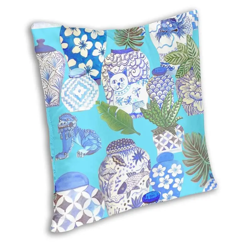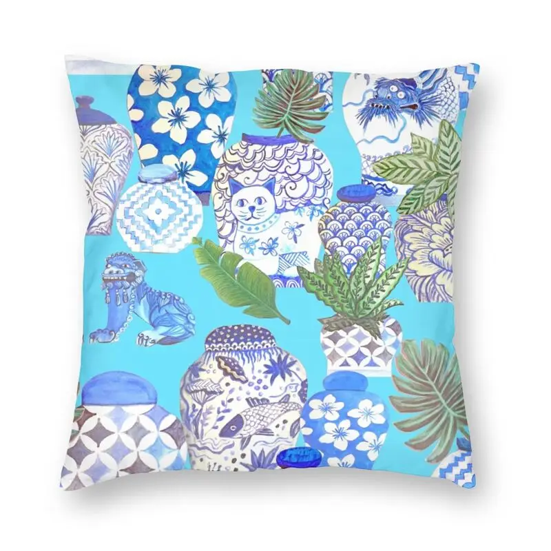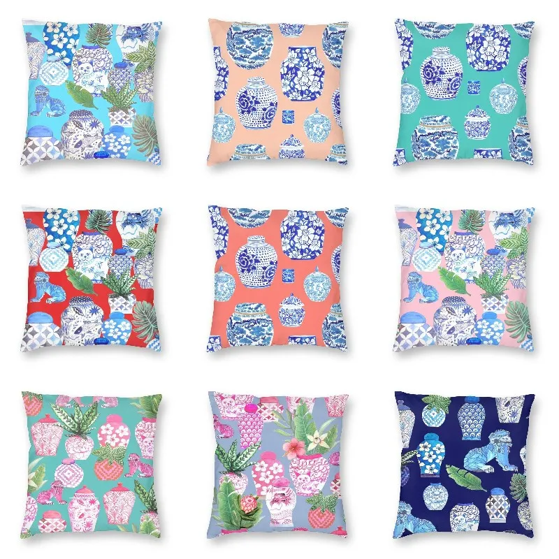 Китайские Имбирные банки с псосами на бирюзе, роскошная декоративная подушка, разноцветная фарфоровая синяя фарфоровая подушка для дивана