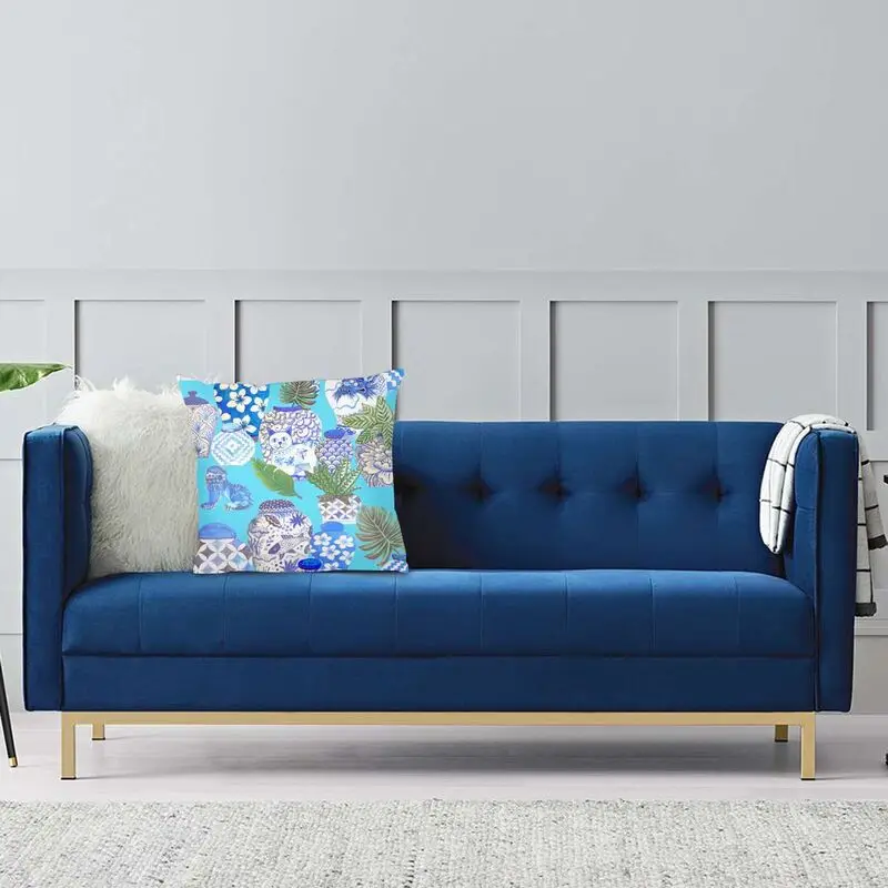 Современный китайский стиль, голубой чехол для диванной подушки, мя...