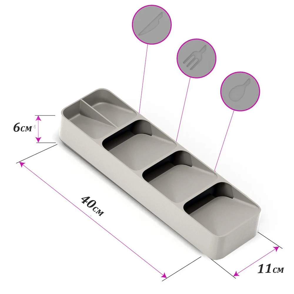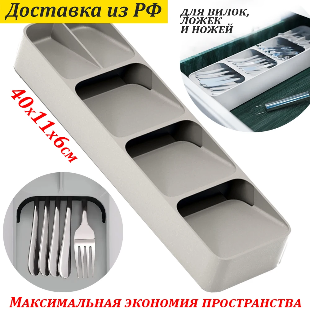 Органайзер для кухни, 8 отделений 36.5х36.5х5 см, лоток для хранения кухонных столовых приборов, разделительный блок, серый