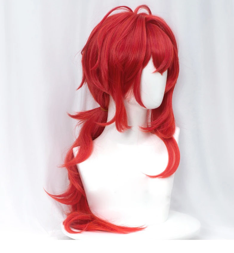 Парик для косплея Genshin Impact Diluc длиной 60 см, красный хвост, термостойкие волосы, синтетические парики для косплея аниме + парик