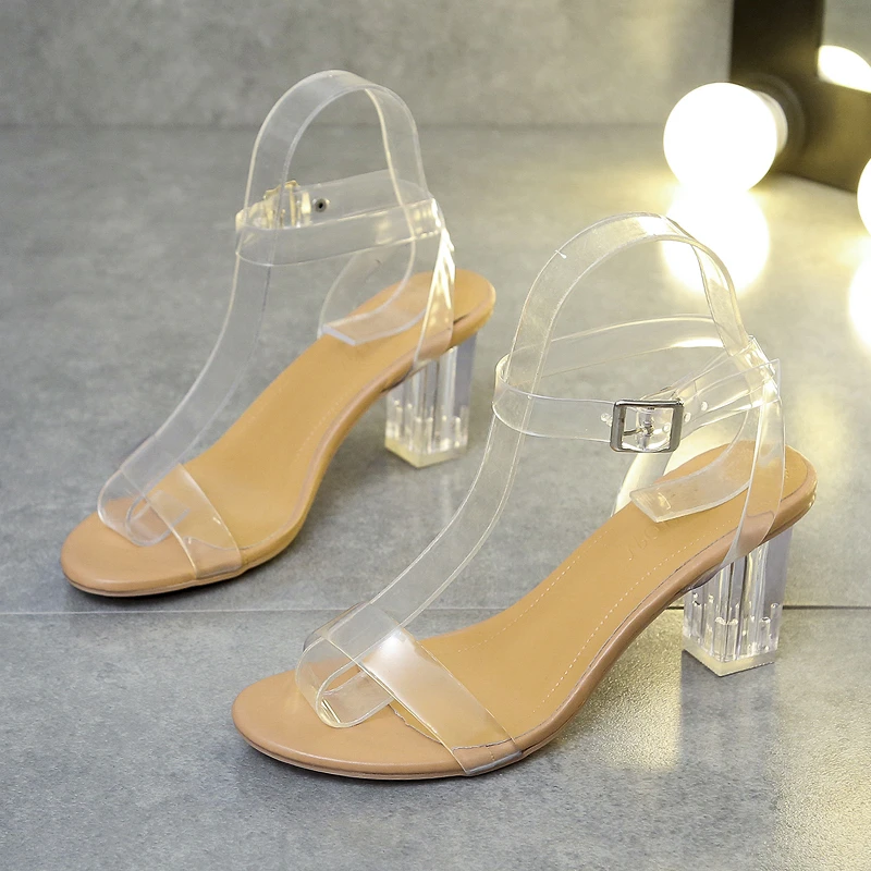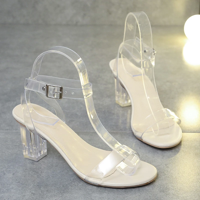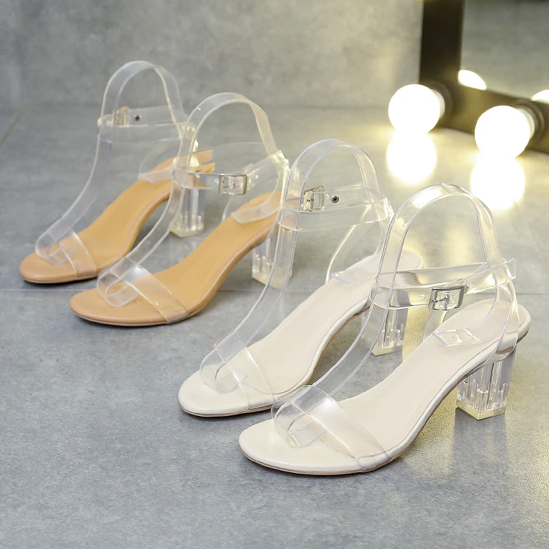 Новинка 2022, прозрачные женские летние сандалии на высоком каблуке с кристаллами, привлекательные зеленые вечерние туфли с пряжкой, Размеры 35-42