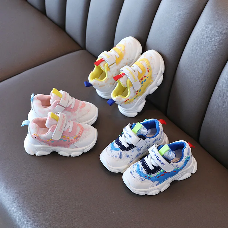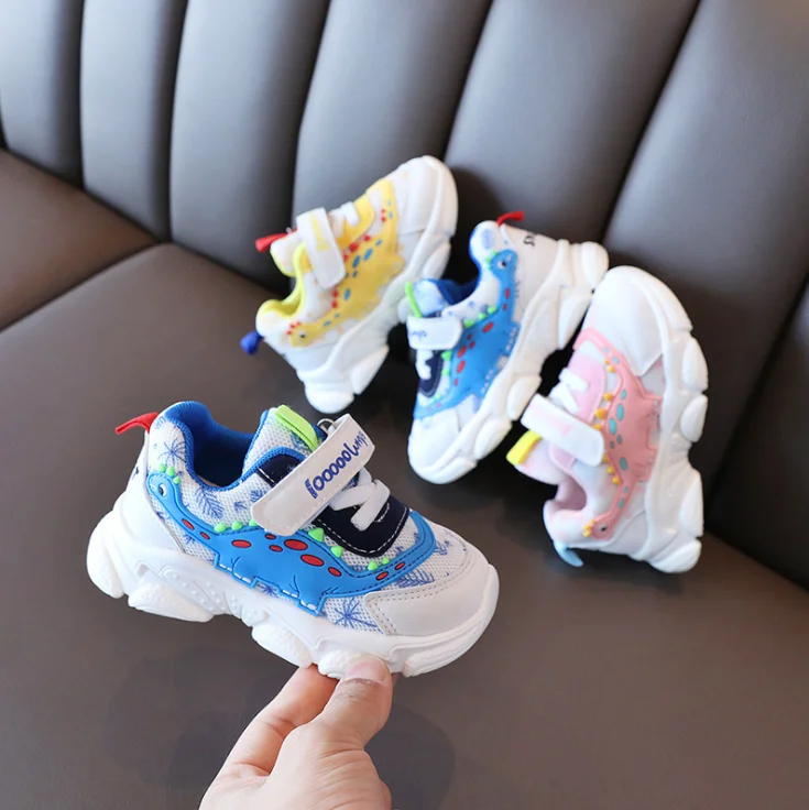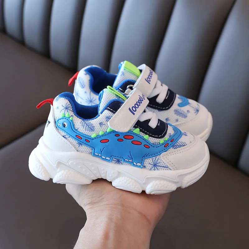 Кроссовки детские, сетчатые, дышащие, Осенние, с мультяшным динозавром, для малышей, 2021