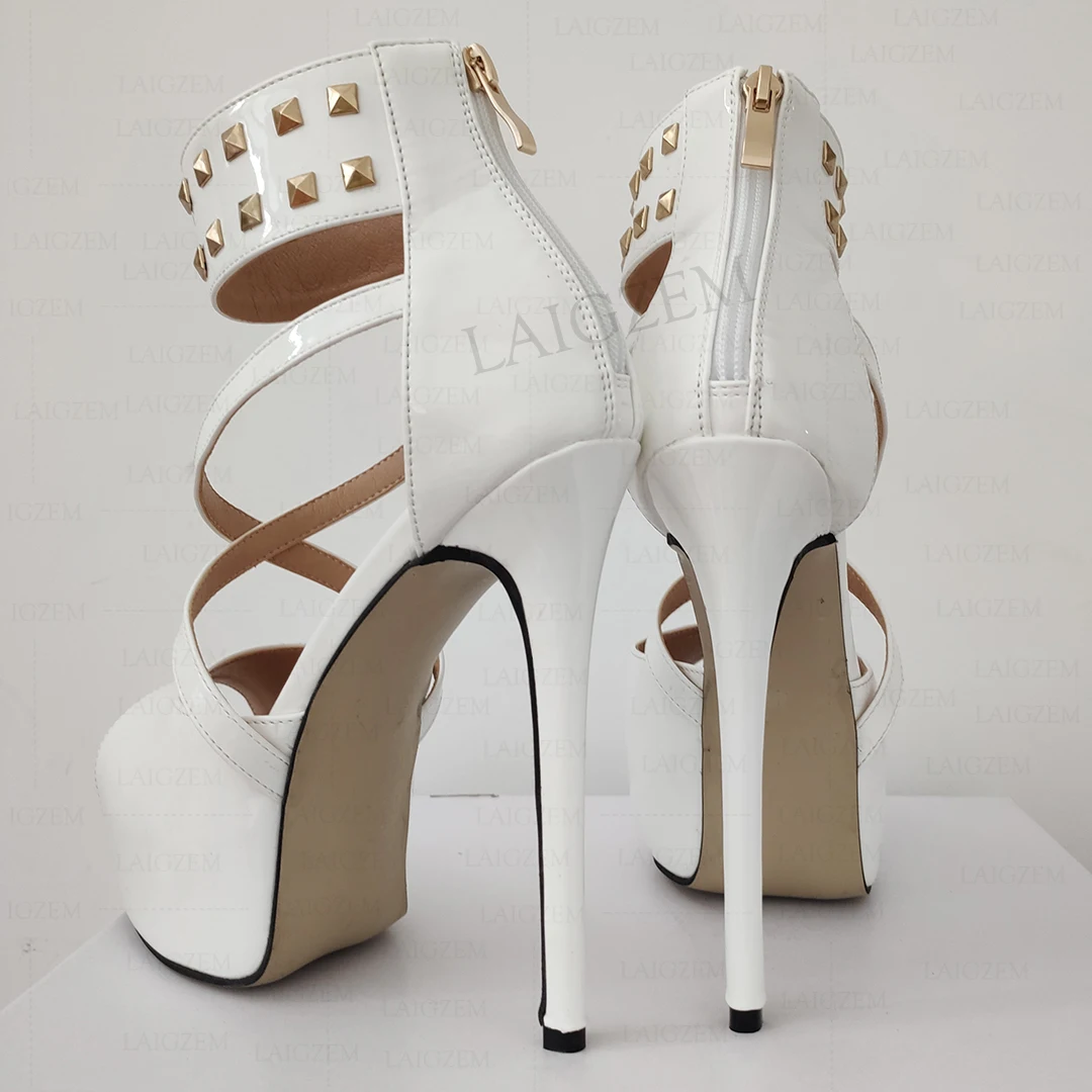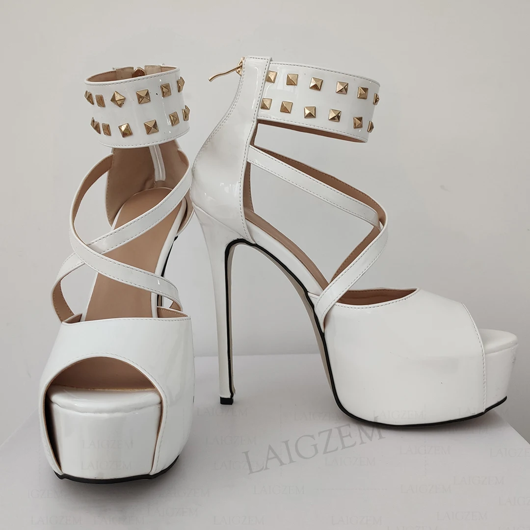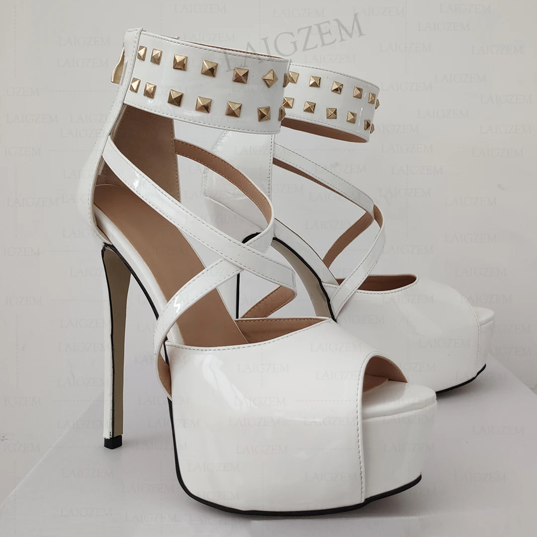 Женские босоножки BERZIMER, блестящие туфли на платформе с открытым носком и шипами на тонком каблуке, женские туфли-лодочки, женская свадебная обувь для вечеринки, женская модель 41 44 50 52