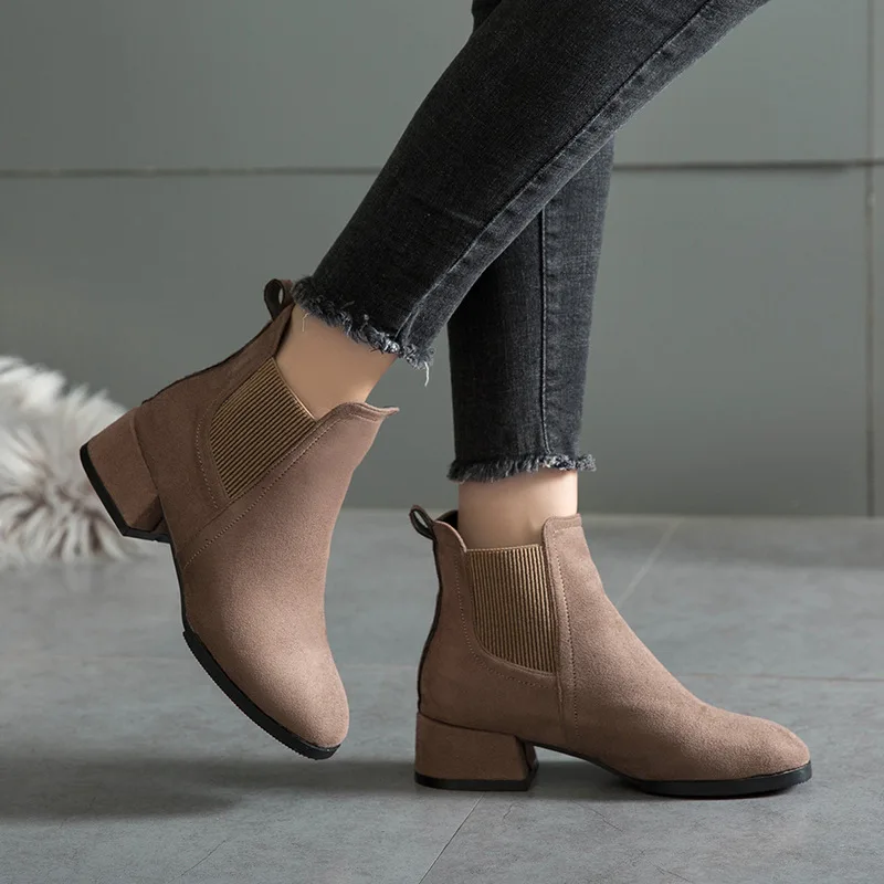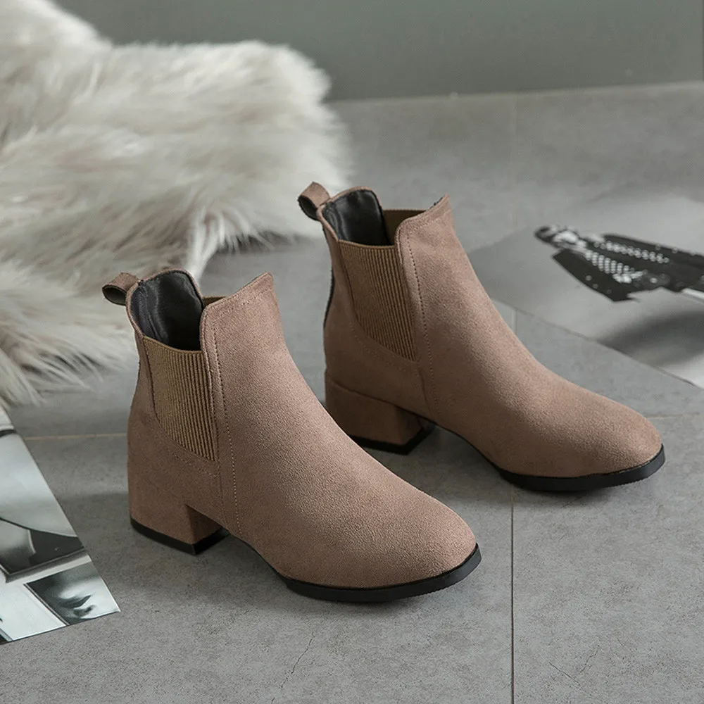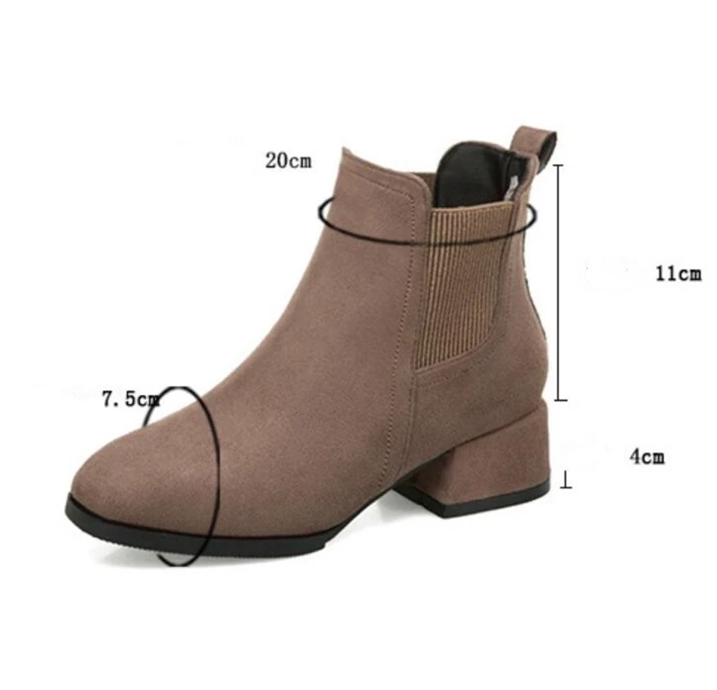 Женские замшевые ботинки челси, теплые ботинки на среднем каблуке, ...