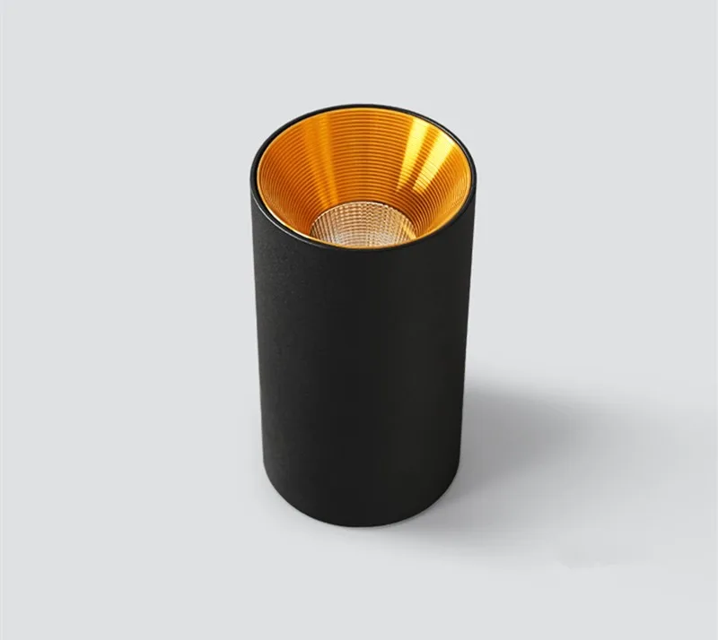 Цилиндрическая Светодиодная лампа направленного света с поверхностным креплением, потолочные лампы с золотым отражателем, 7 Вт, 10 Вт, 12 Вт, 15 Вт, точесветильник светильник