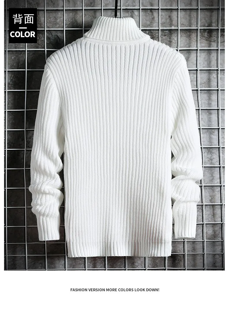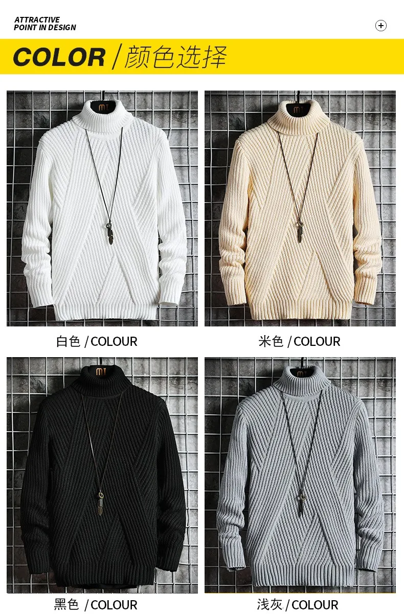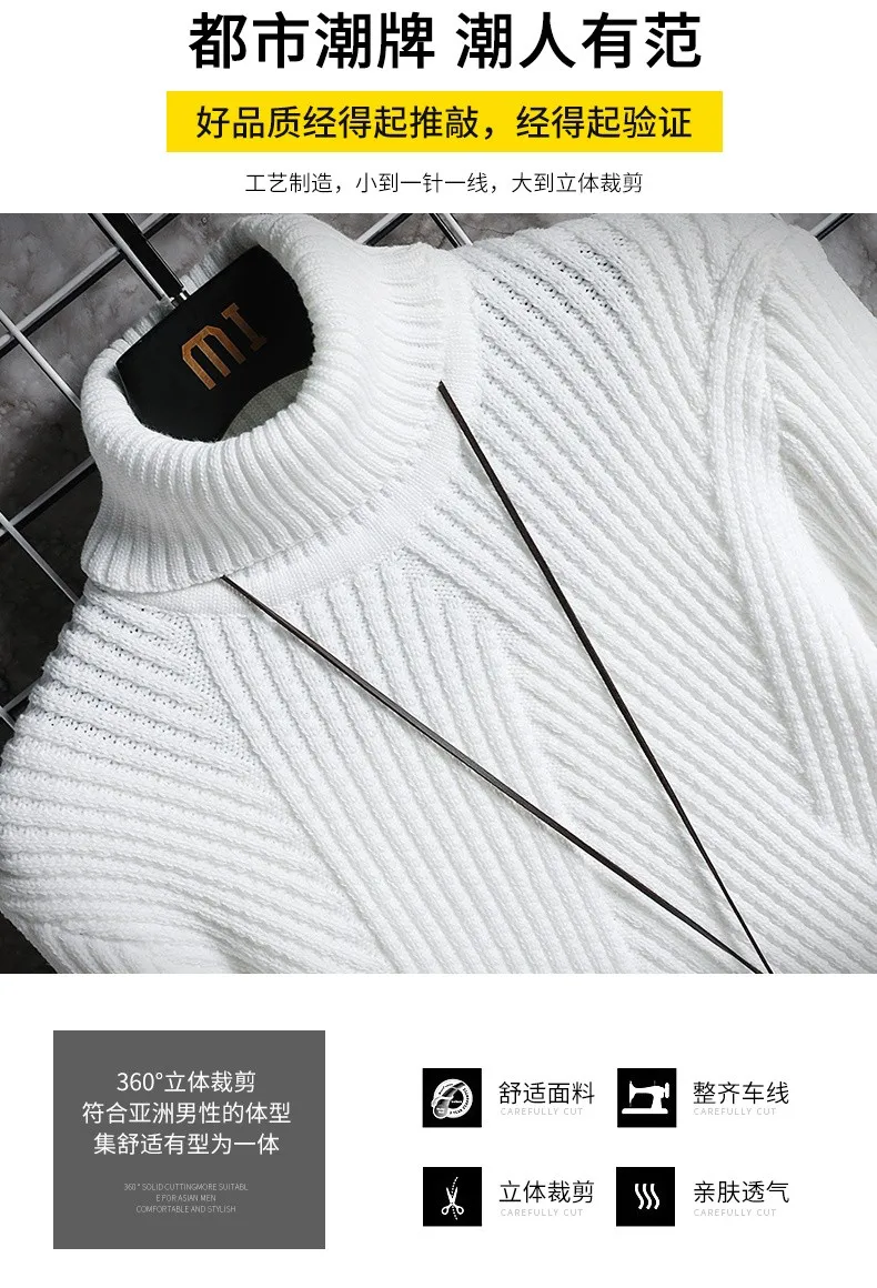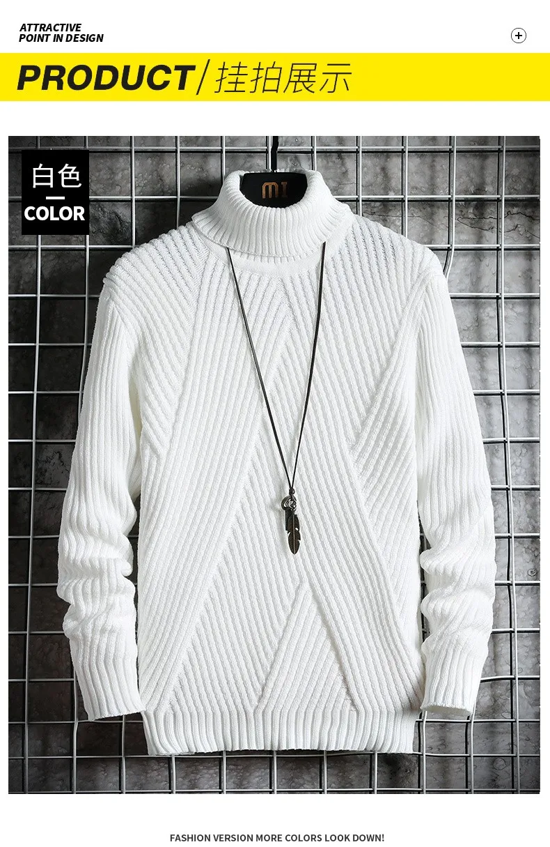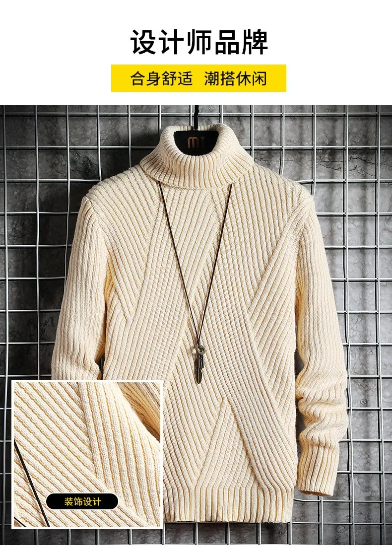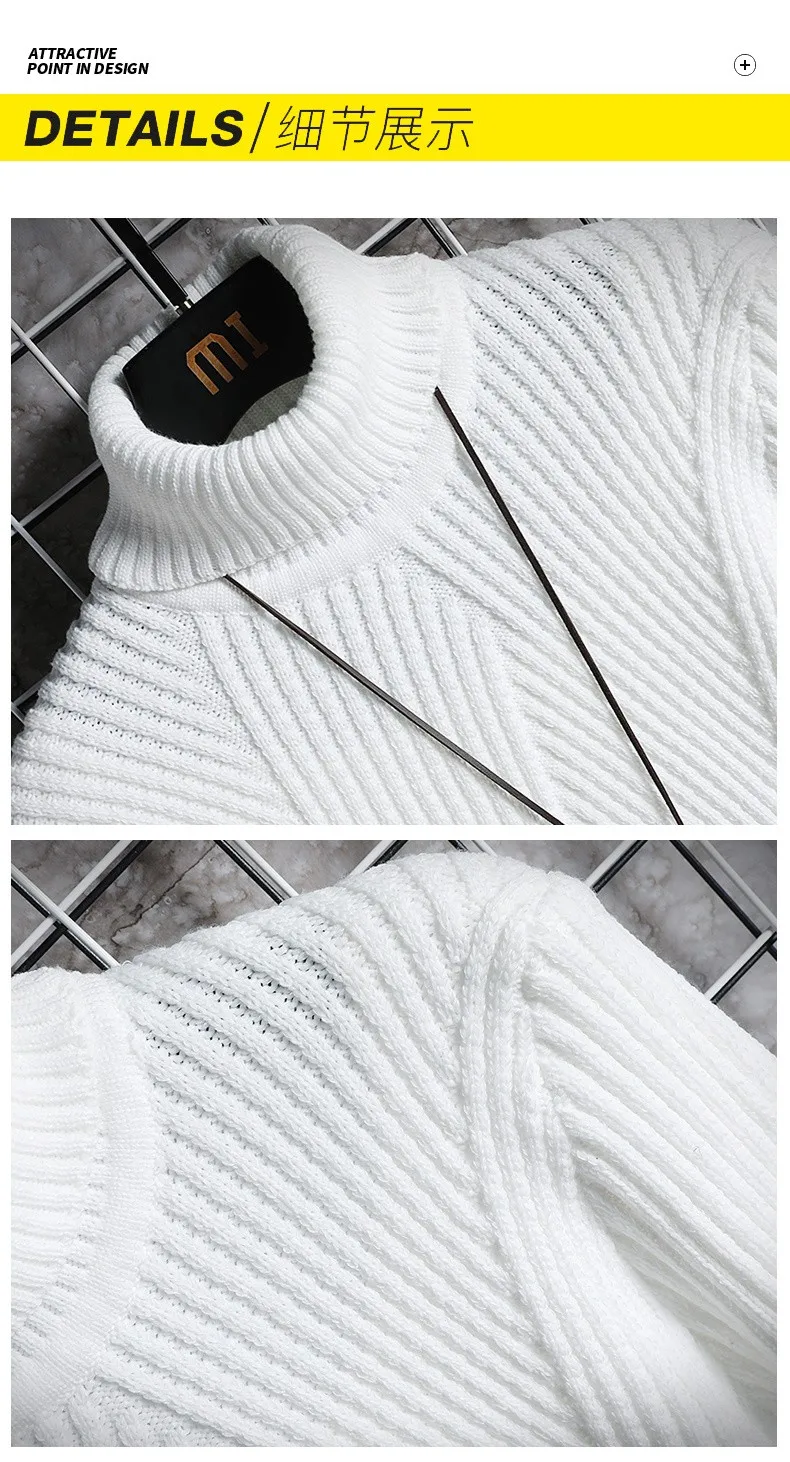 Мужской теплый свитер с высоким воротом, облегающий вязаный пуловер с двойным воротником, брендовая водолазка для зимы
